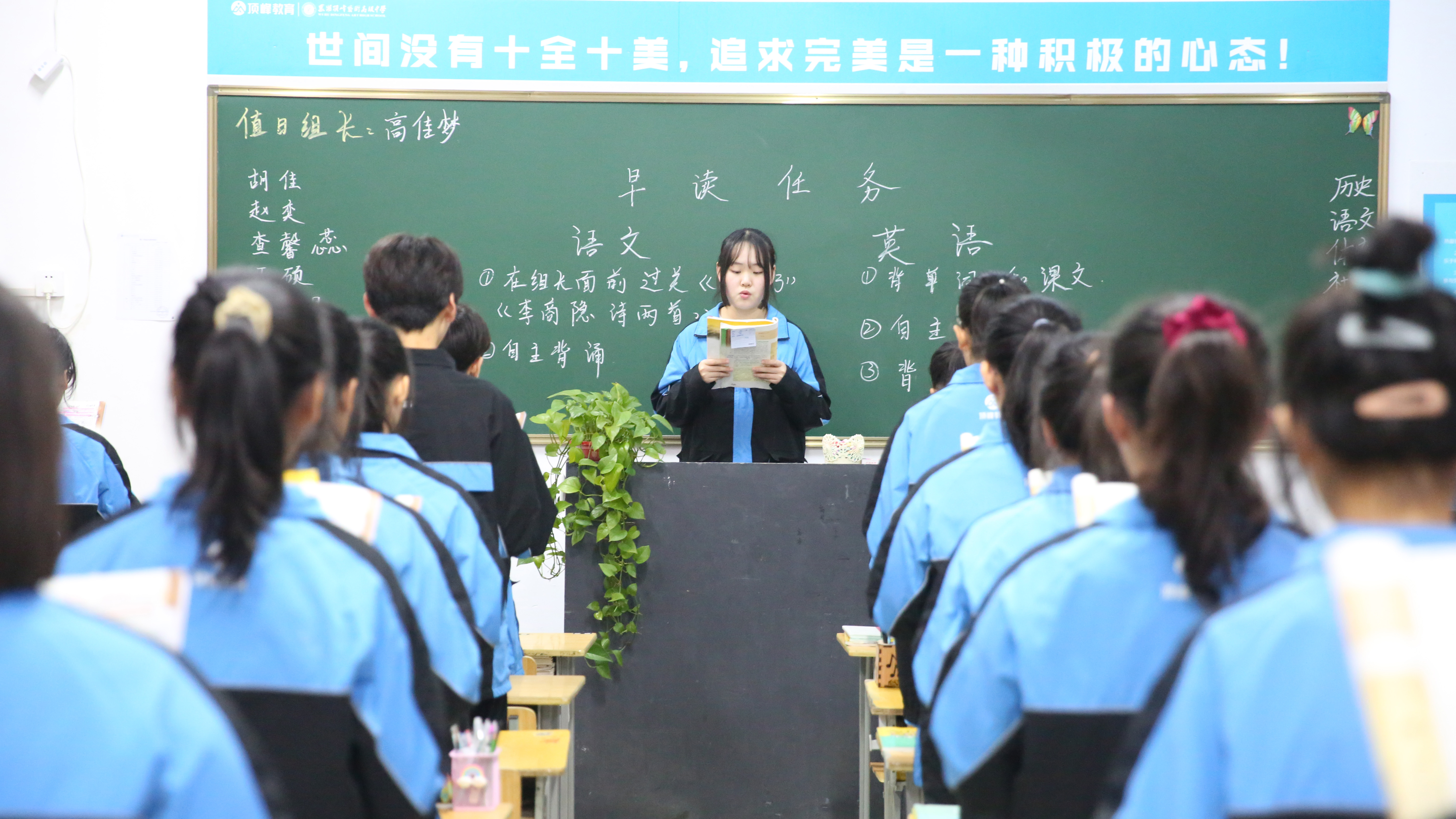 充分利用早晨的时间 让学生多读书是大有益处 既能训练学生的朗读技巧 提高学生读的素质 又能使学生积累更多的知识 而且高中生正处于记忆力较好 能储存大量知识的阶段 所以,充分利用好晨读尤为重要 每天30分钟的晨读 带给学生的不只是阅读能力 发现书本文字中潜藏的诗情画意 提升自身品格修养更为关键 让晨读成为一种习惯 让阅读融入我们的生活 这也是顶峰艺术高级中学六项校本其 一—— 养成教育 晨读是希望的开始 它让我们更有活力和朝气 晨读时 我们专心致志,心无旁骛 晨读时我们声音不仅洪亮 更是一种精神 以及克服艰难的决心 力学如力耕,勤惰尔自知