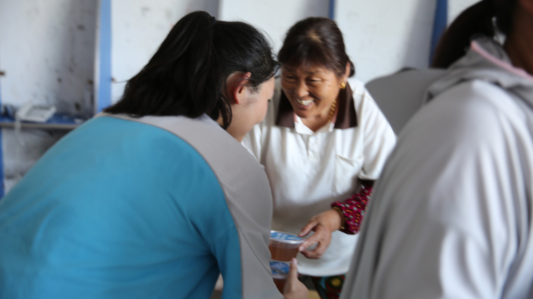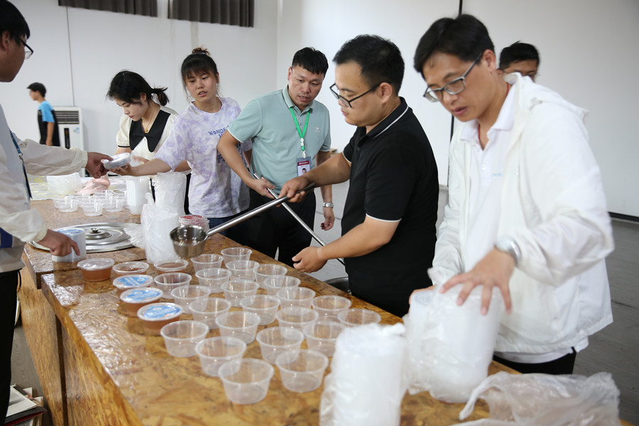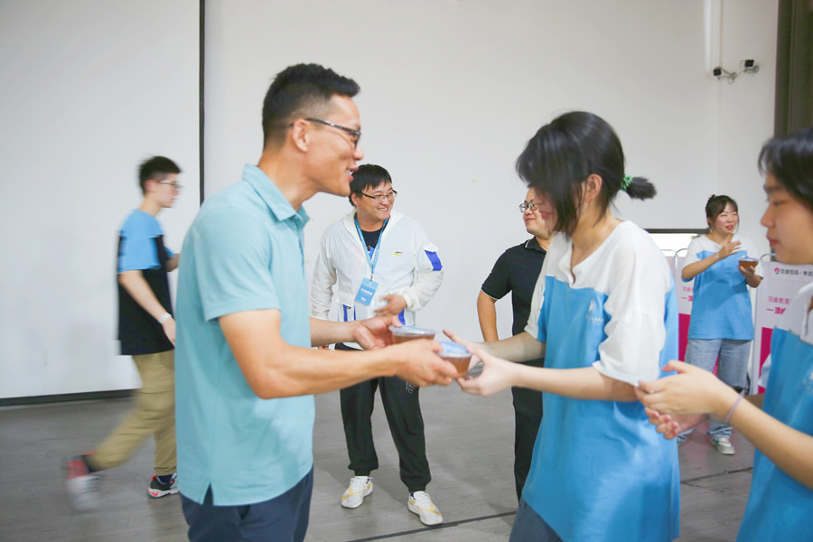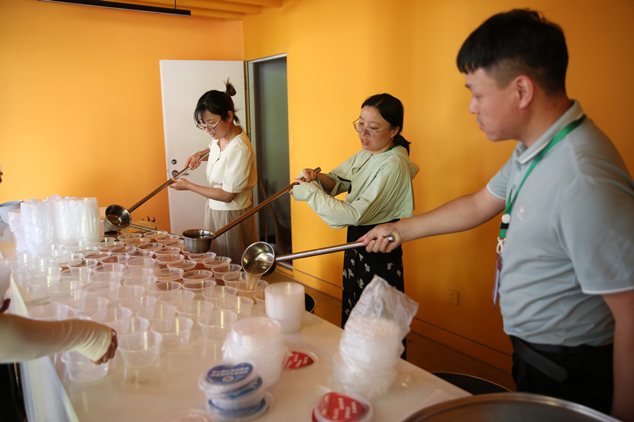 清凉解渴的绿豆汤,经由食堂后勤的阿姨们几个小时的熬制,再由老师们将绿豆汤搬运到画室,一份份盛好,最后送到孩子们的手中。