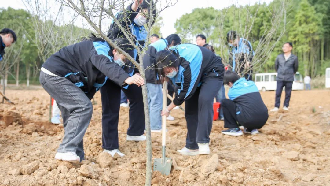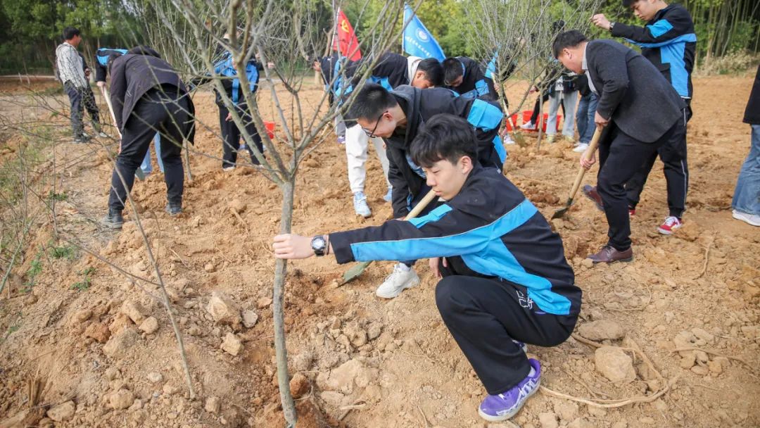经过大家的共同努力,一排排小树苗“落地扎根”,迎着春风、沐着暖阳,学生代表们在团旗下宣誓,增强绿色环保意识,践行绿色可持续发展理念,更进一步深入学习“好人精神”,将纯良正直的观念深植于心中。
