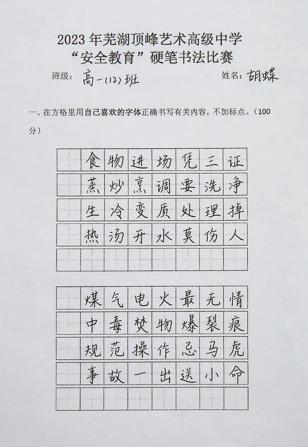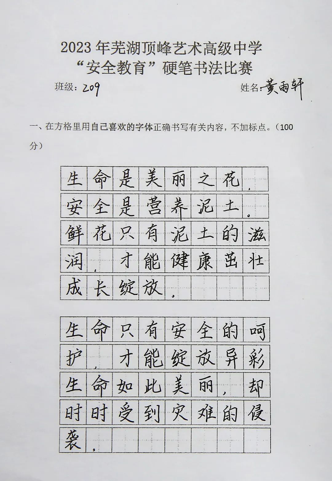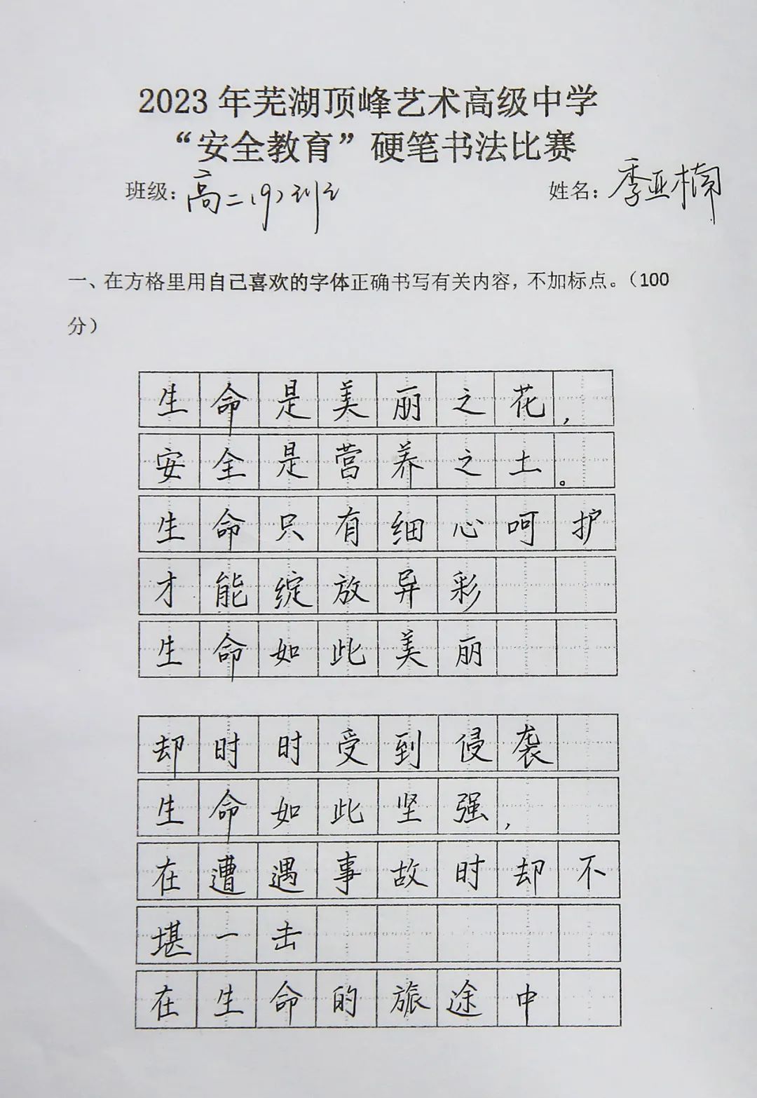 *因版面有限 ,仅展示部分 墨传情思,书香悦人心,诠释着对于安全的敬畏。本次比赛在丰富学生文化生活的同时,增强了学生自身的安全意识,提升了全校师生安全意识和安全素质。
