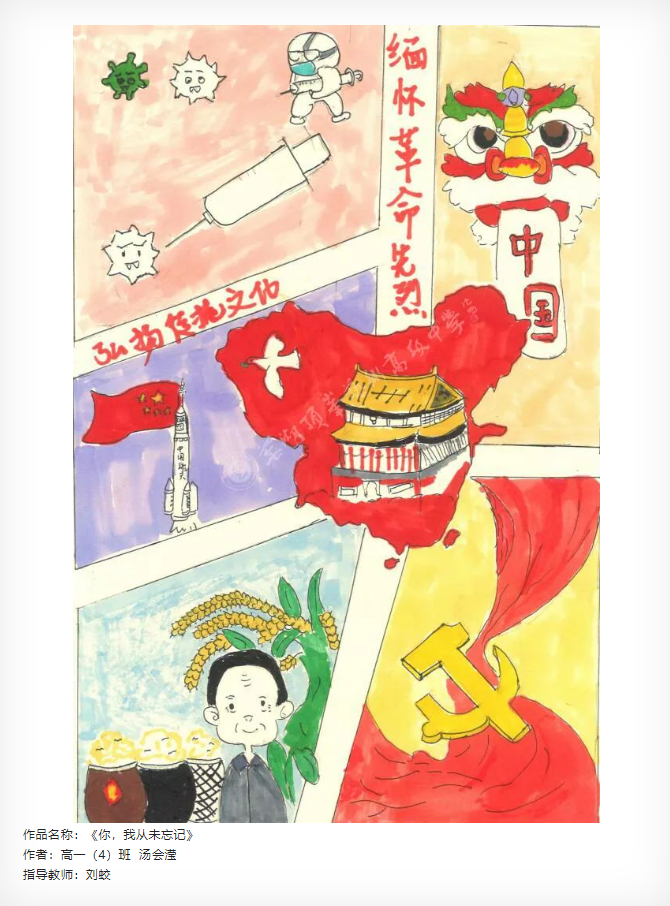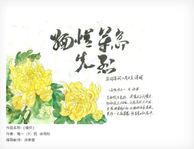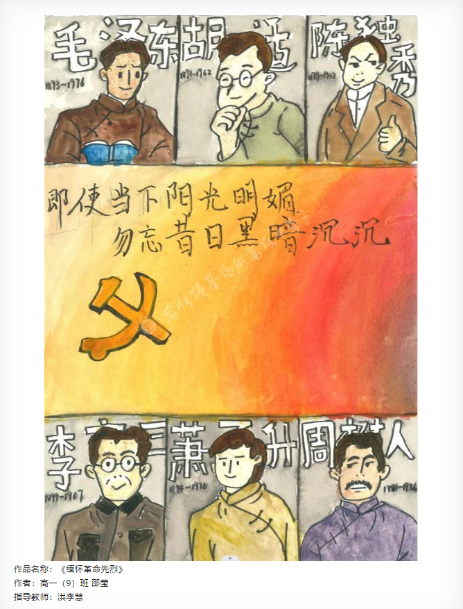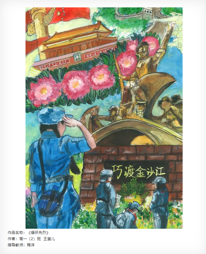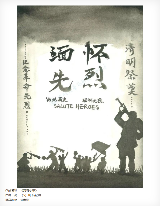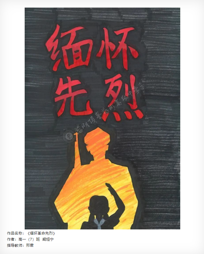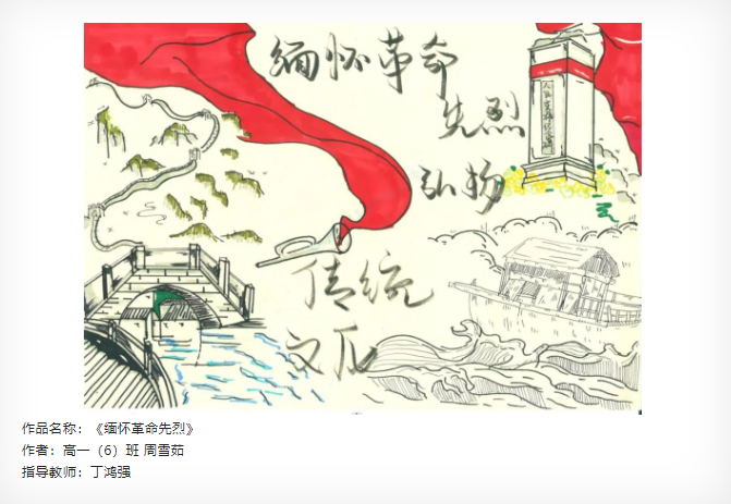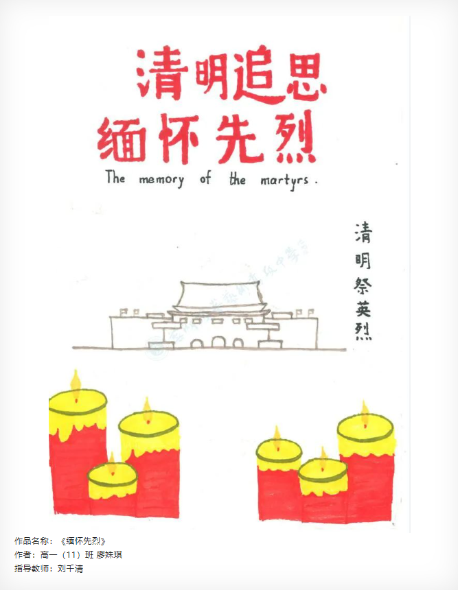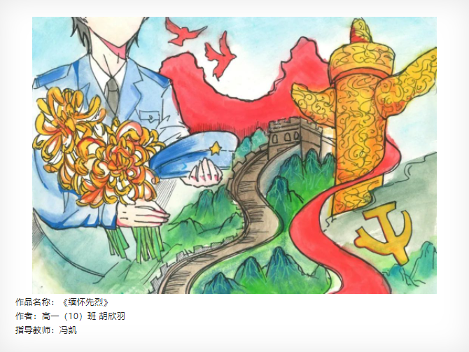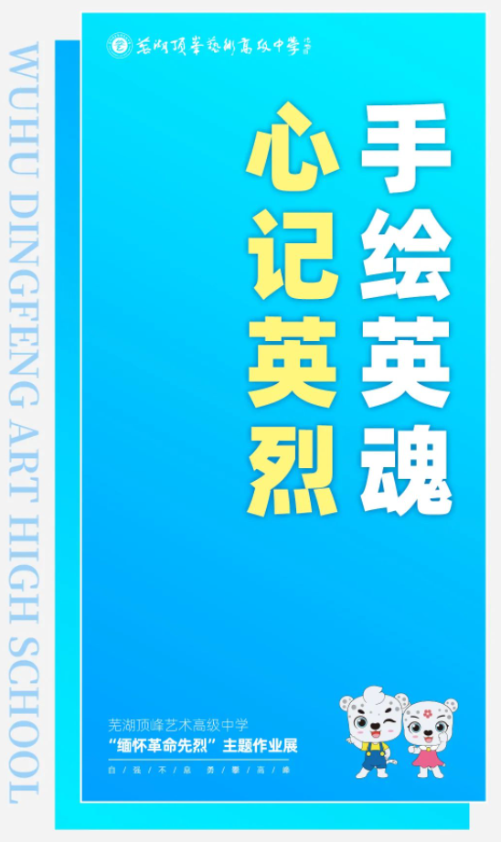 弘扬英烈精神,传承红色基因,为充分表达对革命先烈的崇高敬意,提升学生的爱国热情和民族自信心、自尊心和自豪感。 顶峰艺术高中贴合学生课业实际情况,特在清明节组织开展了“缅怀革命先烈 弘扬传统文化”主题活动。学子们执笔绘英魂,认真描绘出一幅幅动人的画作,从而表达了自己对革命英烈的追思与敬意。 MIANHUAIYINGLIE “缅怀革命先烈”作业展