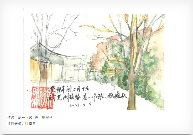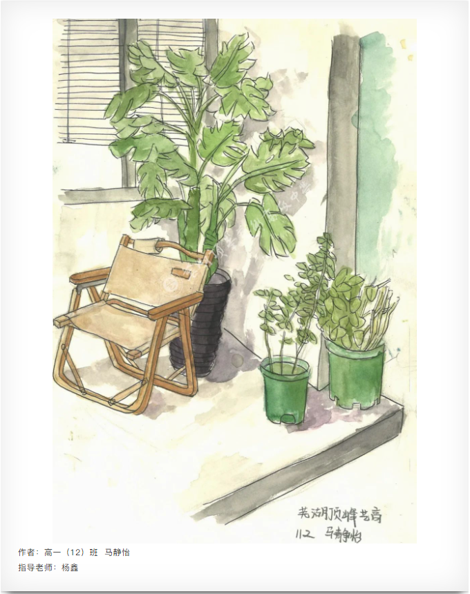 采撷春光,校园写生,来看我们画笔下的顶峰一角!