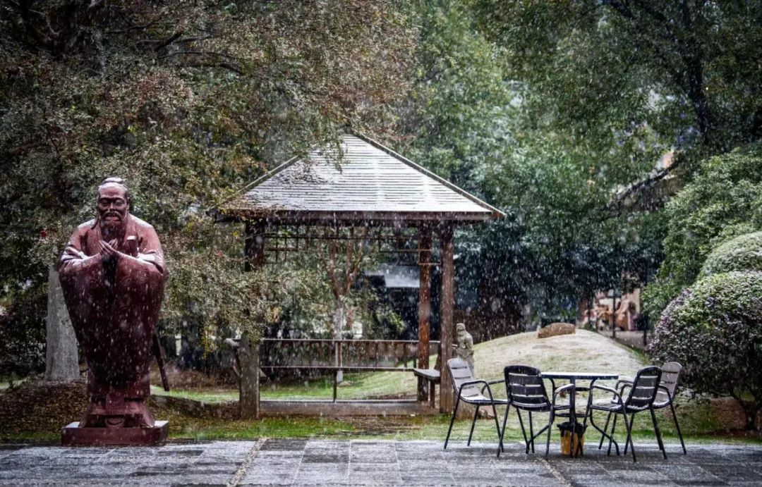 一下雪,校园就美成了诗,飘落的雪花拥抱大地,那是冬天寄来的情书;满地满树的白绒平铺柔软,万物皆被晕染成酥白色。这个冬天在雪中漫步,领略银白世界的静美,用一捧雪的温柔邂逅诗意的顶峰校园。