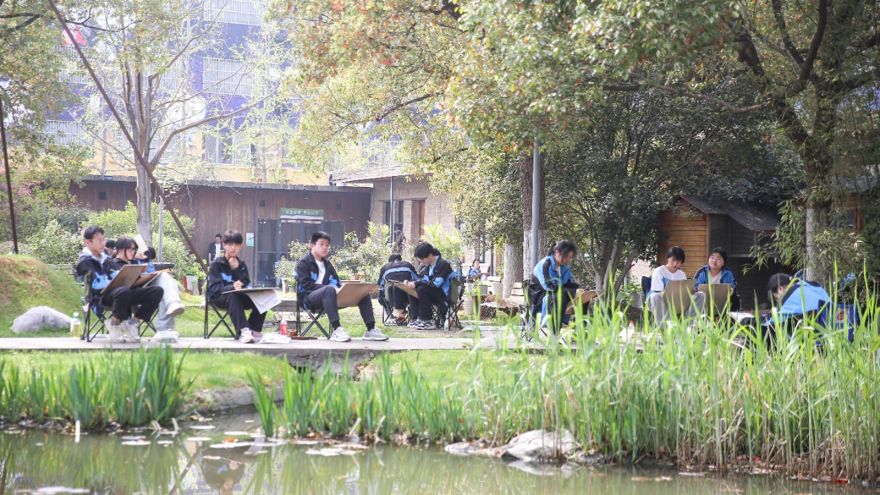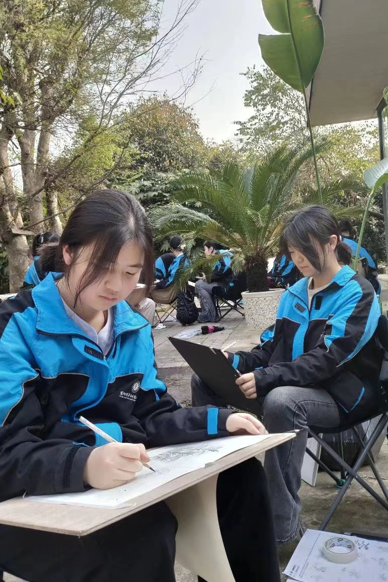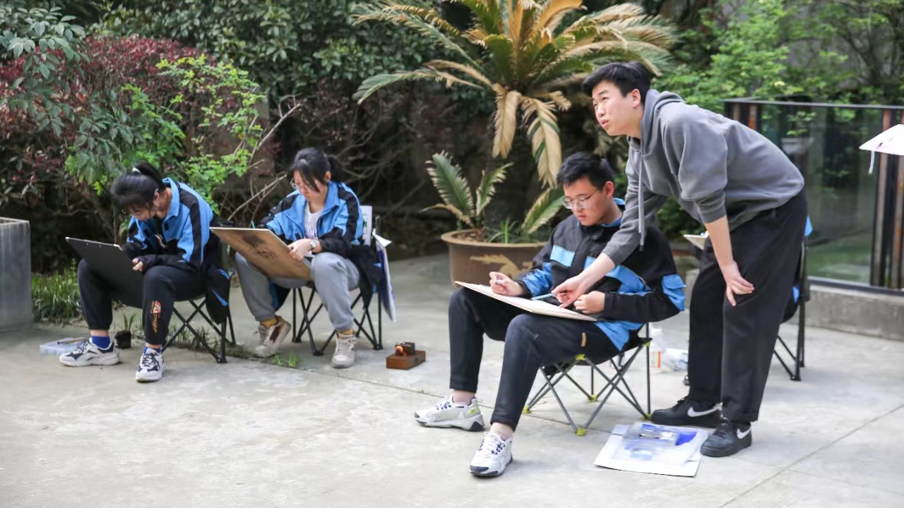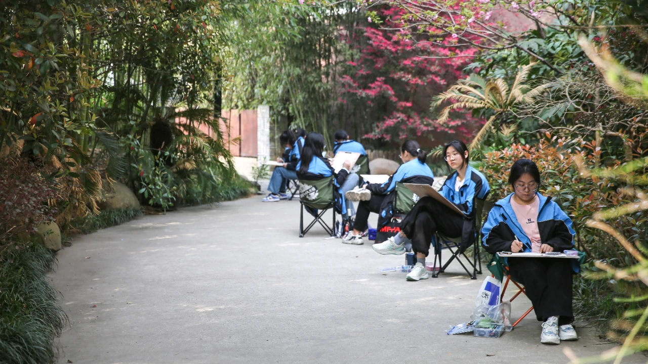 顶峰校园春意浓,少年写生正当时。在这烂漫的春日,学校开展了校园写生活动,学子们把春意看在眼里,把诗意写进心里,把画意融入生活。引导学生在探索校园的自然环境中,融入课堂上学到的艺术理论与审美素养,不断体会艺术规律、进行取景锻炼、启发创作,培养观察能力,提高构图能力,提升对画面空间的认识、理解与表现。 春光,浪漫,饱满,它把一个冬天蕴藏的精神、力量都尽情地释放出来;艺术源于生活,要去看、去听、去感受,于是学生们抬起脚步,跨进这明媚的春日课堂,拿起画笔,用心描摹顶峰无限春色美景。 告别常规的室内课堂 来到真实的户外 学子们伴着初春的惬意 循着光影,运笔布局 静享作画时光 一草一木,皆为素材 一笔一划,姿态万千 笔尖记录着校园一路林荫、一树繁花 找寻最能打动自己的那一帧画面 大自然和生活是流动的课堂 每一张作品都细致讲评 老师边画边讲 解释清楚每个运笔和步骤 同学们专心致志地 听着老师讲解写生技巧 观察着 ,思考着 并逐步掌握光与色的变化规律 认真聆听,积极实践 不断尝试新的绘画技巧 曼妙春意与烂漫青春 构成校园最动人的画面 在这春暖花开好时节 让我们潜心耕耘 自会迎来收获之时