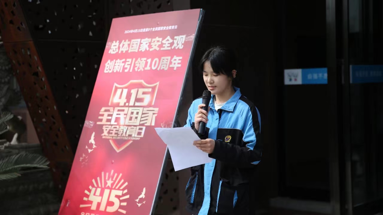 2024年4月15日是第九个全民国家安全教育日,是习近平总书记提出总体国家安全观10周年。为深入贯彻落实总体国家安全观,帮助师生深入了解国家安全知识,增强国家安全意识和自我保护能力,构建平安和谐的校园环境,顶峰艺术高级中学组织全校师生开展了4.15国家安全教育日系列活动,强化安全意识,助力健康成长。 升旗仪式 安全意识记心间 伴随着五星红旗冉冉升起,我校高三年级丁昕玥同学进行了国旗下讲话,以《安全第一,预防为主》为主题,与大家共同探讨国家安全教育的重要性,共同传递“安全第一,预防为主”的理念。呼吁全体师生用实际行动践行国家安全意识,共同守护我们的国家和家园。 《安全第一,预防为主》 (向上滑动启阅演讲稿) 尊敬的胡校长、各位老师,亲爱的同学们: 大家上午好! 今天我们隆重集会在庄严的国旗下,共同迎来了第九个全民国家安全教育日。在这个特殊的日子里,我感到无比荣幸,有机会站在这里,与大家共同探讨国家安全教育的重要性,共同传递“安全第一,预防为主”的理念,共同建设和谐稳定的国家。 国家安全,是一个国家生存和发展的重要保障。国家安全教育日的设立,旨在引导全民养成“爱国、敬业、守法、诚信”的良好品德,增强国家安全意识,提高自我保护能力,为国家安全建设贡献自己的一份力量。正所谓“安全不在于早知道,而在于时知时行”,只有不断学习、不断强化国家安全意识,才能在面临突发事件时应对自如,保护自己和家园的安全。 提高国家安全意识,首先要从日常生活中做起。比如,我们要时刻关注国家政策法规,做到遵纪守法,不参与违法乱纪的活动;要保护国家资源环境,养成节约能源、保护环境的好习惯;要关心家乡社会,积极参与社会公益活动。只有从小事做起,从我做起,才能真正做到“国家安全由我抓,平安社会靠大家”。 国家安全教育不仅仅是一种意识,更需要一种技能。在日常生活中,我们要学会如何应对突发事件,如何进行紧急救援,如何正确使用消防器材等等。只有当我们具备了这些应急技能,才能在关键时刻迅速、有效地保护自己和他人的安全。 最后,我要呼吁全体师生,进一步加强国家安全教育宣传。学校是我们的第二个家园,每一个同学都是国家安全的守护者,每一个老师都是国家安全的传播者。让我们用心感悟国家安全的重要性,用行动践行国家安全的理念,共同建设祖国的明天! 在座的各位,让我们一起牢记“安全第一,预防为主”的理念,用实际行动践行国家安全意识,共同守护我们的国家和家园。 最后,祝愿我们的祖国繁荣昌盛,人民安居乐业!谢谢大家! 主题班会 普及知识筑防线 为把国家安全教育渗透进日常教育教学中,强化师生保护国家安全的意识,我校组织开展全民国家安全教育日主题班会课,引导学生深入了解总体国家安全观的内涵、国家安全工作的内容和重要性,树立正确价值观,成长为有责任、有担当的新一代,为构建安全稳定的国家环境贡献自己的力量。 维护国家安全,人人有责 此次主题教育活动 让全体师生用心感悟国家安全的重要性 让国家安全意识深入人心 未来更将用行动践行国家安全的理念 争当国家安全的传播者和守护者