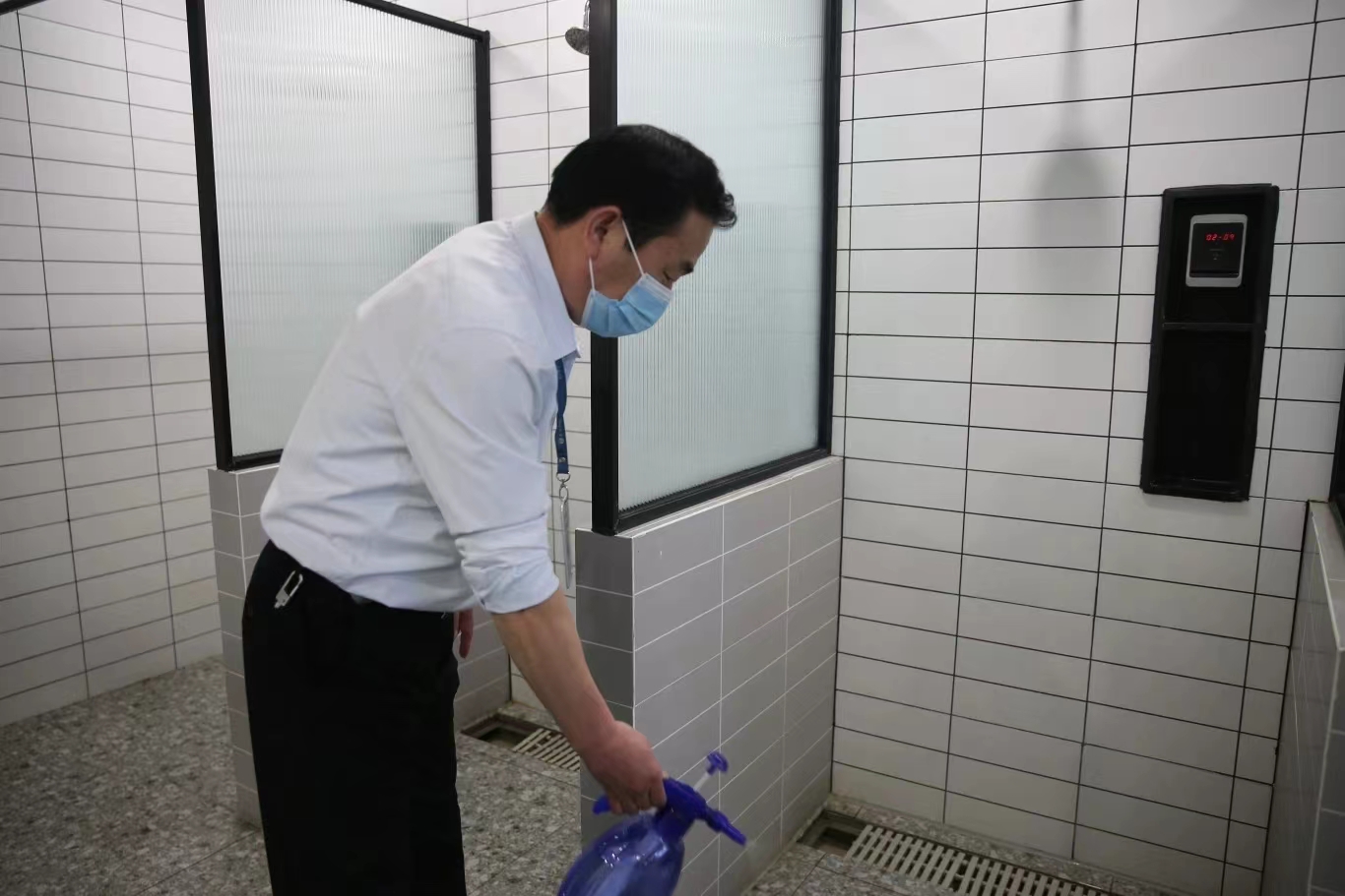 最迟6:40同学们就自觉地离开宿舍,开启高三一天的冲刺模式,余教官也开始了一天琐碎的忙碌。孩子们的健康是他最挂心的事,消毒、开窗通风一日不落,上午下午重复两遍。每至夏天和冬天,和其他宿管一样,余教官会在中午和晚上学生回寝前,预先开好空调,调到合适的温度,为孩子们提供养精蓄锐的温暖港湾。