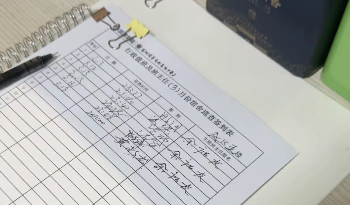退伍后的余教官依旧保留着他较好的记忆力,不仅能在开学时快速记住每一个新生的名字长相,还能在日常生活中细细留意、观察,摸透同学的性格脾性,并记在心间,找到和不同孩子之间正确的相处之道,教导之法。除了五楼的100多个孩子,余教官最多接触的还有班主任和家长们。晚自习放学后,班主任都会带队送学生回寝室,他需要和各班班主任都一一对接签字,不让从班级到宿舍这段路程出现空档时间,确认每一位同学都安全回到寝室。