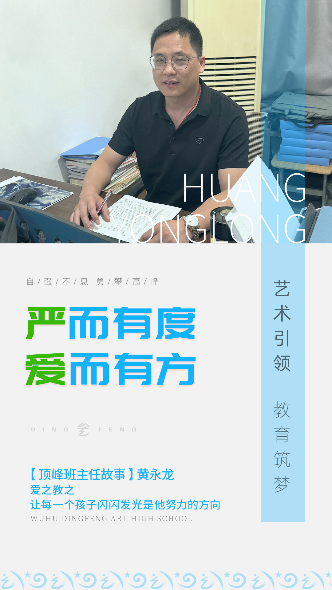 以责任为名,守护学生成长 携真心同行,诠释教育追求 辛勤的付出与日日夜夜的陪伴 让教育星河布满无限可能 让每一个孩子如繁星闪光 六年前他坚定地走上顶峰讲台 在平凡的岗位上扬帆耕耘 再转身 光阴已聚成漫长的故事 / 今天 让我们聚焦顶峰高三班主任 黄永龙老师 倾听他和孩子们相互照耀的故事 正是因为黄老师坚持不断学习的精神和辛勤付出的耕耘,让他肩负的行囊已是满满的荣光,不仅获得一项项教育荣誉,所任教的学生们也不负所望,积极向上努力进取,最终实现自己的大学梦想。 教学十余年,在顶峰六年,他说,师者只有心中有“源头活水”,才能实现师生之间的“天光云影”。 教育是一朵云推动另一朵云,一个灵魂唤醒另一个灵魂。黄老师说他来顶峰多年,“感悟最深的是顶峰的教育理念—— 没有爱就没有真正的教育”,与学生的日夜相伴,才真正理解这句话的含义,于是,黄老师这“一朵云”认真推动了他所带的“41朵云”。 目前黄老师正在带高三毕业班,提到与学生们初次相识,他说“我知道孩子们都很不容易,既要学文化课也要学专业课,时间很紧,但我更希望每个孩子三年后,都不后悔自己曾经努力过”。没有规矩不成方圆,在管理班级这块,黄老师探索出一套行之有效的治班方略。他从高一起就制定了严格的班级管理制度,比如学生课前十分钟到班做好静心准备,晚自习提前半小时到班学习…… 起初学生也会有怨言,但慢慢的学生发现每一次比他们更早更准时坐在讲台的,也是“老班”。这便是黄老师的第二大招数——以身作则,他和每一个学生立下约定“我到你到,我不到你不到”,三年间,黄老师把这句话转化成实际行动。 黄老师不仅严而有度,更爱而有方,关注到每个孩子的情绪变化。有班里的孩子,成绩退步了还顽皮,黄老师会“很严厉”,时刻严格要求;而因为考试情绪低落的孩子,黄老师会“特意”开个班会,只为鼓励她别气馁。“来到顶峰,大家都是一样的”,黄老师说,不论初中如何,到了高中,他不会给任何一个孩子“贴标签”。也是这样,曾经不被看好的学生,在黄老师的温暖教育下,“最后考上一本”,说到这里黄老师脸上全是笑意。因为对每个孩子的真心付出,让他收获了满满幸福。 “学生就像小树苗,要指引它成长的方向”是黄老师教育的理念,而“不放弃任何一个学生发光的机会”是他坚持的底线。 教师就是一种选择,而怀有一颗初心,尽职尽责回馈家长们的期许,为学生的成长助力就是黄老师的选择。他说“我要全身心地投入更多的时间、精力和陪伴,让更多家庭看到希望之花绽放”。于是黄老师几乎全程陪伴学生的追梦之旅,每天6点多就到校,高三时将近凌晨一点才能到家。 他将对学生的爱倾注于在日常工作中,留意孩子的学习、身心健康。虽然学生“不显山不漏水”,他却能敏锐地捕捉到学生内心纠结情绪并及时开导;有次连续三天在校待到凌晨三点,因为学生身体情况不好,“我要守着他们给予陪伴和心理安慰,毕竟家长不在身边”。 勤于细微间,爱在寻常处,黄老师对教育事业的真情投入,对学生的关心和用心,架起家校沟通的桥梁。如今,他正带领着班里的孩子们阔步前行,冲刺高考,相信前路漫漫亦灿灿。