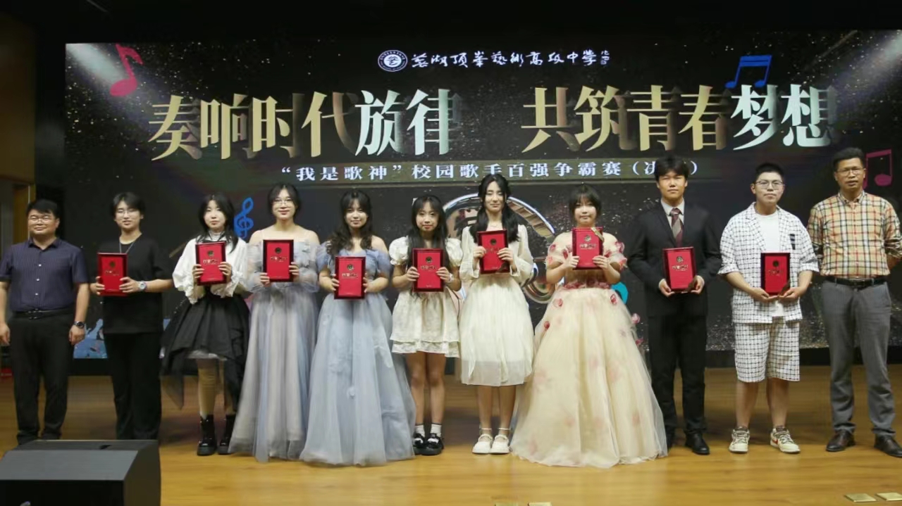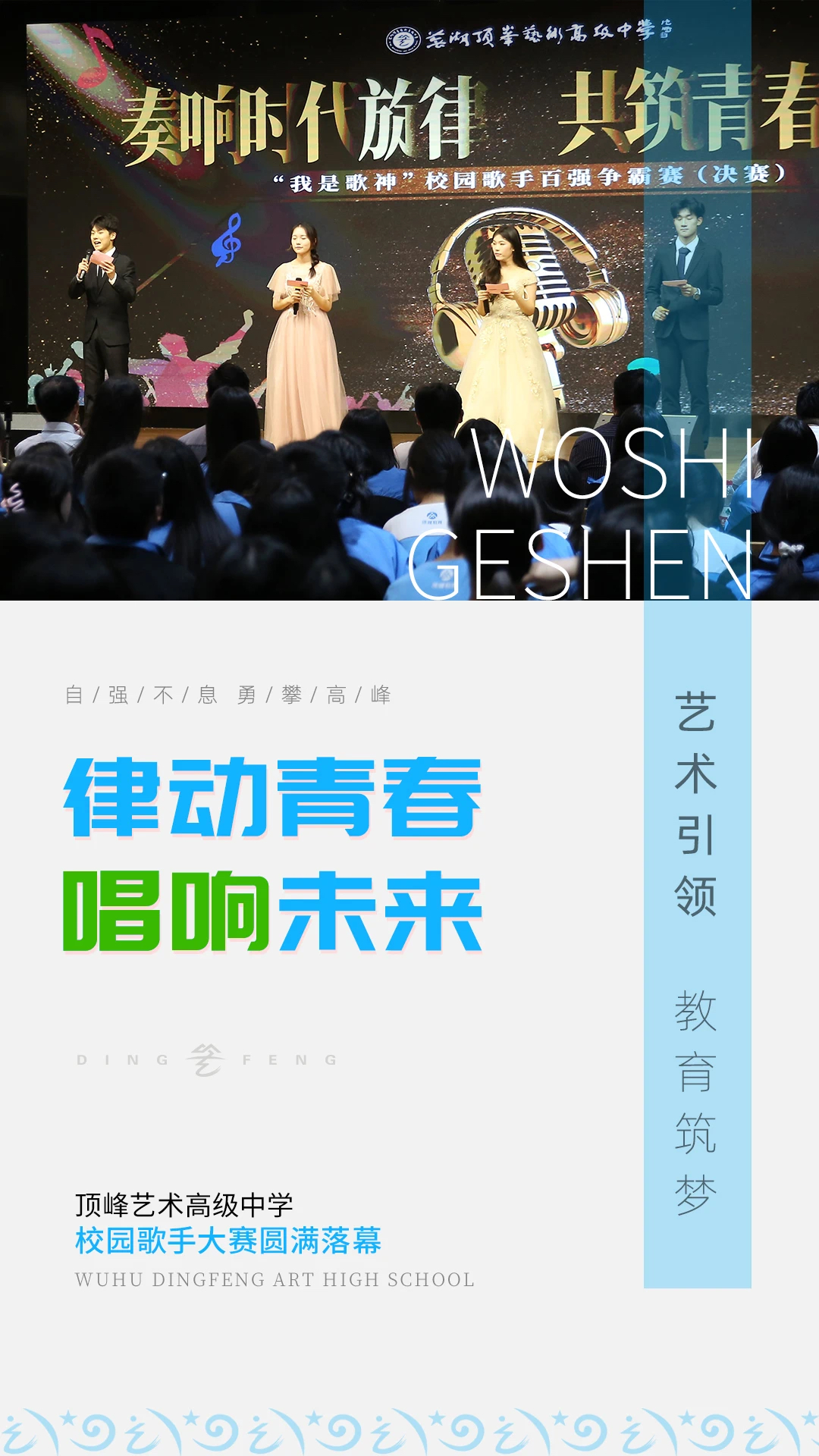熠熠青春,踏歌而行。全体高一高二师生欢聚此刻,聆听顶峰学子们以歌载梦,唱响一首首成长赞歌,唱响未来的无限可能。 好的音乐,值得等待。从暖春到盛夏历经数场激烈比拼,从海选的初试锋芒到初赛的势不可挡,终于12位歌手在今夜完成集结,一起来聆听他们关于成长的独白吧! 在第一轮比赛中排名前四的选手以抽签方式两两组队进行对唱、用不同声线、多元风格,交汇碰撞擦出耀眼夺目的火花。高音与低音交融,青春的梦想、恣意的轻狂洋溢其中,夹杂层层跌宕的情感,在听众心中泛起涟漪。 用热爱聚起人海星光,让音乐与掌声恣意交织,扑面而来的阵阵音浪,感染着台下每一个鲜活的灵魂。 经过紧张而激烈的角逐,由专业评委和大众评委团组成的评审团根据选手们的歌唱技巧、音乐表现力和舞台台风等多方面因素进行打分,最终评选出了获奖名单。 歌 神 歌 王 十佳歌手 在这趟徜徉音河的旅途中 感谢每一位参赛的歌手 用实力证明了自己,用歌声感染了我们 顶峰校园歌手大赛 话筒暂歇、灯光暂灭、歌声暂休 但你们对音乐的爱依然热忱 为梦扬帆的故事远未结束 此夜共沉美好,我们来年再见!
