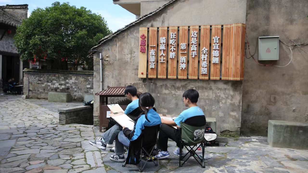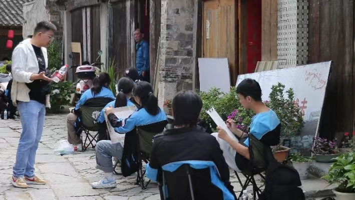 每一次奔赴,都是为了更好地出发 每一次驻足,均是为了更好地积攒能量 我们一直在进步的路上 / 一晃春去夏来,万物生,宜写生 这次顶峰学子走进鸠兹湾、走进西河古镇 经历一次自然之旅,一次学习之旅 纵情画意,尽绘美景,忙趁东风放纸鸢 体会到研学意义 —— 开拓视野,收获成长 这里风光迤逦,林果繁茂,丰收农耕文化浓郁,在脚下延伸出了无边的翠绿,那是鸠兹湾六月捧出的乡村最质朴的原色。这次研学之旅顶峰学子来到2023年中国农民丰收节全国主场活动所在地 —— 鸠兹湾艺创共富乡村,让学生挥别尘世的烦恼,让画面更为纯粹。