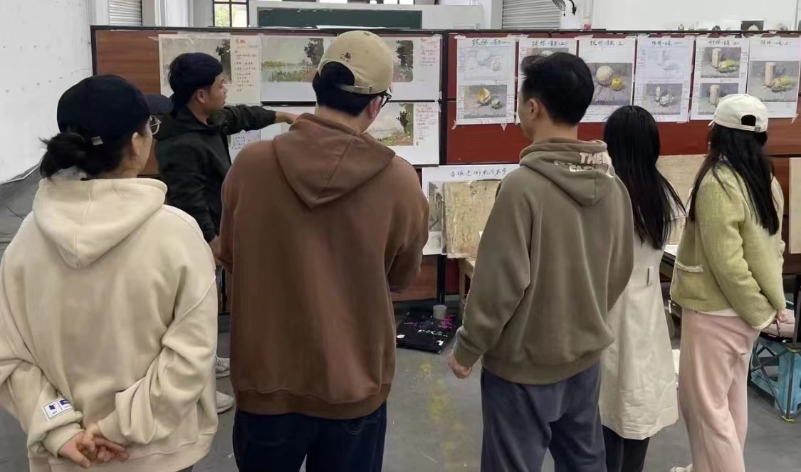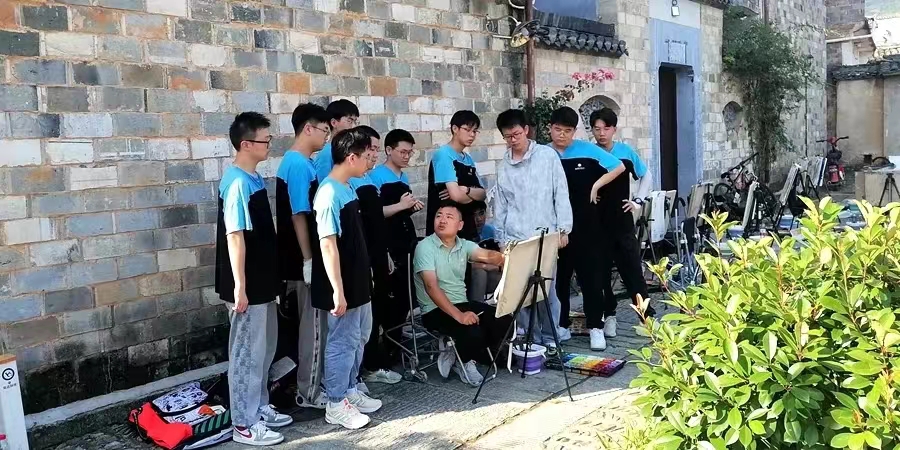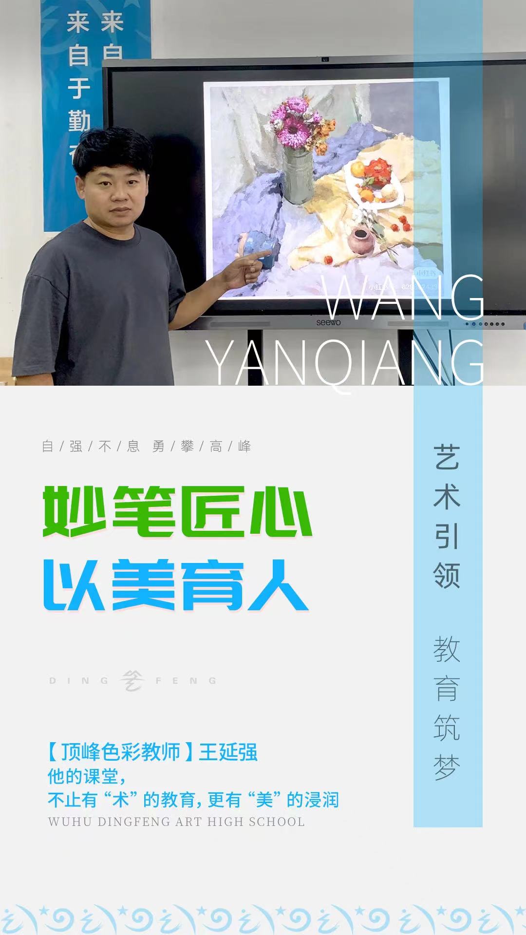 王延强老师谈到他和顶峰的结缘契机,大概可以从一个微博私信说起。 △青涩的毕业照 问起王老师选择顶峰作为“吾心安处”扎根育人的原因,他说“在这里总能发现不足,实现自我成长”,多年来,顶峰一直给予老师成长的空间和资源,提供专业成长支点。 “来上班的第二天,就开启培训模式了”,王老师回忆道,在顶峰不仅有内部交流培训,结合学生画面分享核心经验内容;同时开展结业考试,检验学习成果。 艺考改革后考题多变,为了追求更美的教育风景,将最新的美术动态和理念带入课堂,整个美术教研团队共研共教,真正做到如王老师所说“一堂好课的背后,是大家共同的努力。” “课堂上,我是比较严格的老师”,王老师要求学生在课上要全身心投入,细心钻研每一个画面。 但严师虽严,温情不减。王老师深知美术课堂情绪调动的重要性,所以课堂上他常常开个玩笑,“灌点鸡汤”,对整个班级状态进行大方向的掌舵;有时个别同学状态有点低迷,王老师观察细微,仅从挥笔动作就能窥见学生情绪,课后就单拎出来,倾听、引导他走出困境。 △右一王延强老师 教育不是单向的灌输,而是需要与孩子们进行互动和交流。有时候学生很惊讶地说“王老师我都没写名字,你怎么知道这幅画是我的呢”,而这是因为王老师在日复一日的相处中真正了解每个学生的特点,更好地开展因材施教。 △美术课堂上,王老师进行范画指导 十几年教学生涯,王老师意识到学生成长是有无限延展性的,他所能做的就是给不同的学生指明前进的方向。 有家庭条件不是很好的同学,他就送画材和学习资料;有基础扎实却不自信的学生,他就多多鼓励,挑选该同学的作品进行展示,建立自信心;对待偏科的学生,与其他科目主教协同教学,逐一辅导。 记得他曾带过一个零基础转学美术的学生,在顶峰的学习期间中,伴随王老师合适的引导和自己的努力,展现出惊人的进步速度,最终一路成长,考上中国美术学院。 一心一意,筑起育人阶梯 王老师向美而行,步履不停 陪学生走过一段段至美的人生旅程 在更高处遇见更美的风景