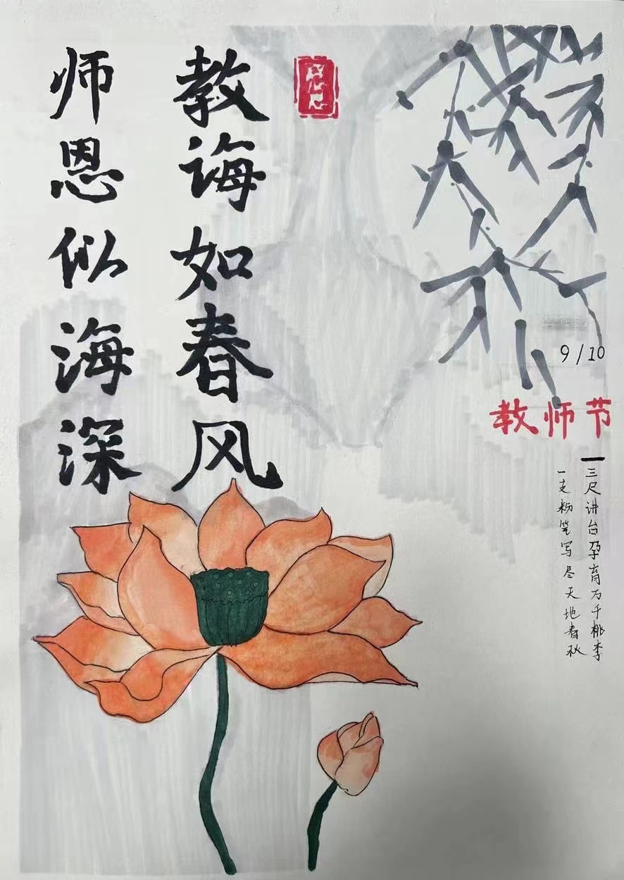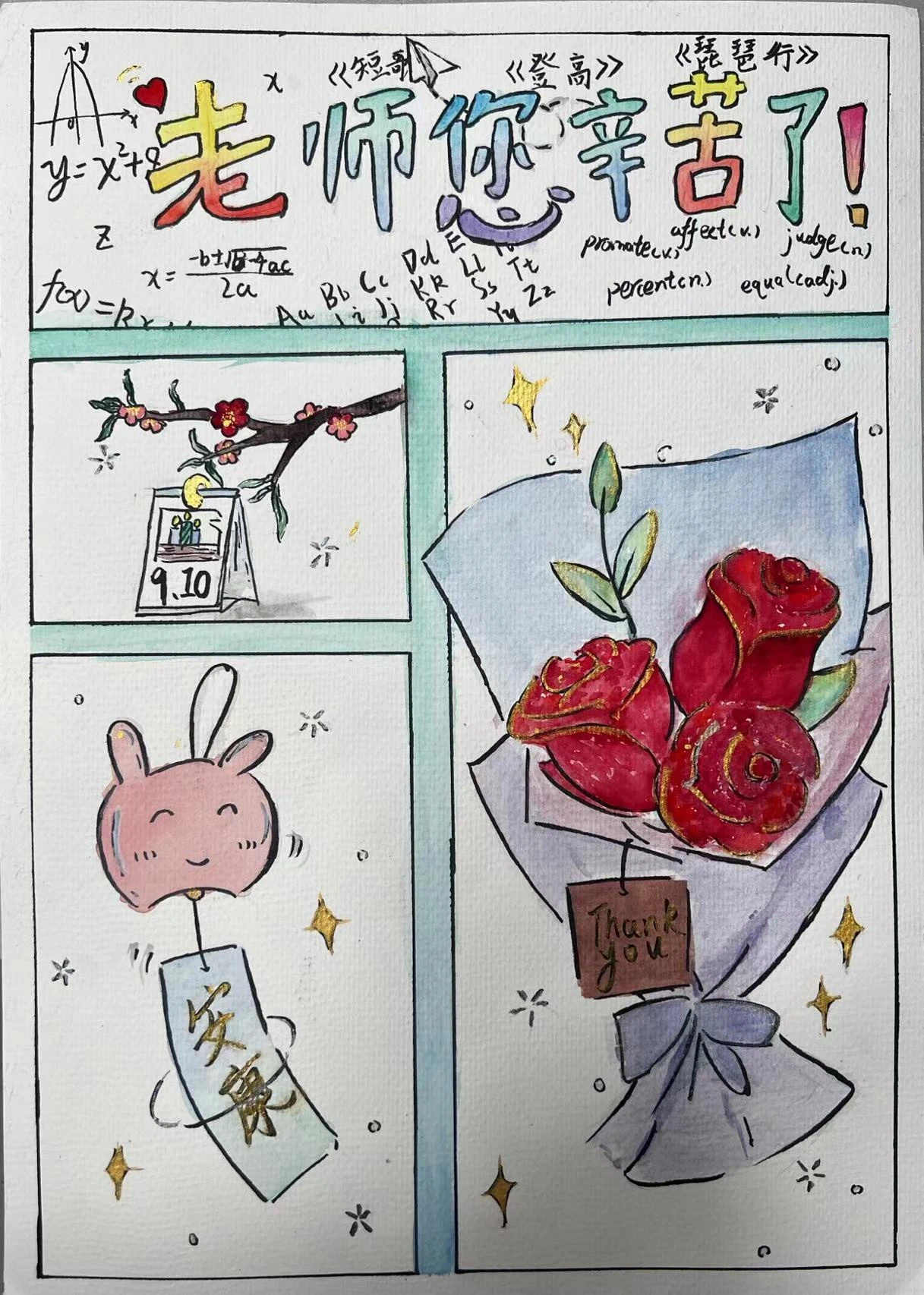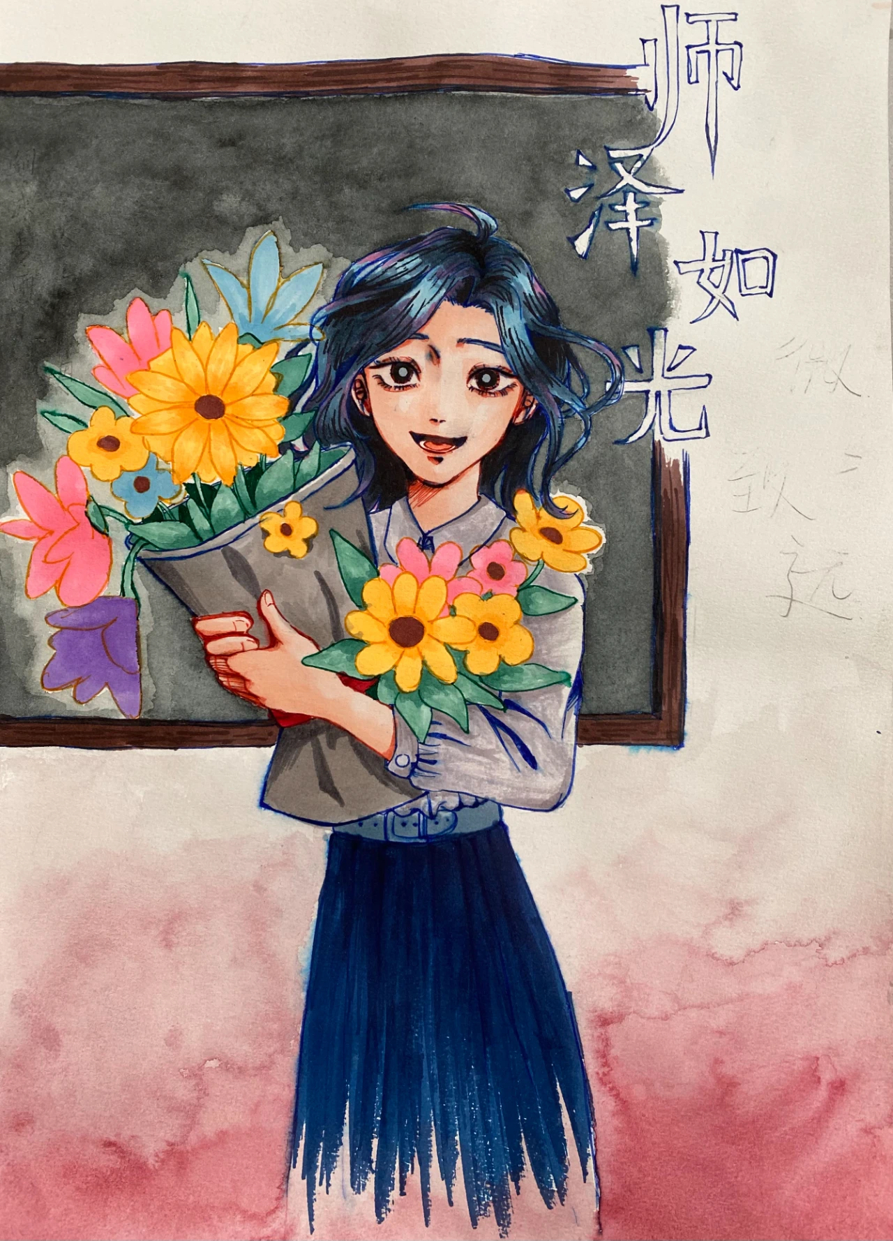 朝阳不息,你们育梦成光 润物无声,静待花开无数 又一年教师节,又一载桃李芬芳 顶峰艺高的高二学子们 用独有的方式献出画作 向辛勤耕耘在教育田野上的老师们送上祝福 / 一点一滴,不忘老师们春风化雨的教诲 一笔一画,孩子们用心描绘“爱”和“敬” 让我们一起走进同学们的作品 一起感受这一份份赤子之心! 作品名称:《师恩如灯,照我前行》 作者:高二/洪圣羽 指导教师:刘千清 作品名称:《师恩难忘》 作者:高二/范艳婷 指导教师:万伟 作品名称:《教师节快乐》 作者:高二/江莉 指导教师:丁皓玲 作品名称:《指路明灯》 作者:高二/管文慧 指导教师:朱敦诚 作品名称:《教师节快乐》 作者:高二/胡美幻 指导教师:丁皓玲 作品名称:《桃李满天下 春晖遍四方》 作者:高二/张程 指导教师:洪李慧 作品名称:《致谢师恩》 作者:高二/周怡 指导教师:陶洋 作品名称:《难忘师恩》 作者:高二/冯净 指导教师:洪李慧 作品名称:《教师节》 作者:高二/罗沐筱 指导教师:朱敦诚 作品名称:《感师恩 颂师情》 作者:高二/康诗涵 指导教师:丁皓玲 作品名称:《师泽如光》 作者:高二/郑沛雯 指导教师:王中华 作品名称:《教师节快乐》 作者:高二/姚冰冰 指导教师:洪李慧 作品名称:《教师节快乐》 作者:高二/谈欣怡 指导教师:万伟 作品名称:《致敬师恩 心怀皓月》 作者:高二/石怡蕾 指导教师: 丁皓玲 作品名称:《师恩难忘》 作者:高二/方思雅 指导教师: 陶洋 作品名称:《桃李芳菲》 作者:高二/潘妍 指导教师:陶洋 作品名称:《花香伴书香》 作者:高二/刘文菲 指导教师:朱敦诚 作品名称:《老师您辛苦了》 作者:高二/万文燕 指导教师:丁皓玲 作品名称:《师恩难忘》 作者:高二/水思宇 指导教师:万伟 作品名称:《师恩》 作者:高二/朱晨硕 指导教师:丁皓玲 *仅展示部分 学生们的画作中传递了满满的爱和真挚情感 让这个教师节更加温馨而难忘 愿师生之间的真情永远珍藏在心底 成为教育之路上最美丽的风景