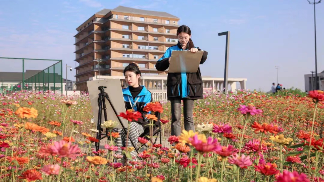 与绚烂的春夏作别,在宁静的秋冬之际,波斯菊迎来了属于它的时节,仿佛是大自然最细腻的笔触,在顶峰一方小天地间勾勒出繁花如织,静静绽放,向阳生长,昂扬向上,让校园又添好风光~ 你有约,花不误,快跟紧同学们的脚步,“艺”起用不同的方式打开这本顶峰赏花图鉴,共书青春诗篇灿烂,共忆求学时光美好! 千枝青似碧,万朵叱如霞 在顶峰一隅葳蕤生香 用最灿烂的姿态诠释花语的含义 坚强、纯洁,自由,爽朗 正如孜孜求学的同学们朝气蓬勃 栖于路边,秋英摇曳 上课下课时,同学们每每路过 漫步其中感受它的盎然生机 无形中也接受了一次生命与美学的教育 唤学子向阳而行,不怠不惧不弃 正是读书好时节 于繁花深处,细品书墨香 在求知的世界里专注自我 在阅读、交流中寻找智慧的启迪 一步一景,明艳生机 同学们撷一段馥郁入画 感受那份来自大自然的柔软与坚韧 提笔落笔,留印校园美景 更让青春的梦想在这里灼灼绽放 在和煦的阳光下舞蹈翩跹 每一步都踏出了诗意的节奏 如同这个季节绽放的一朵朵波斯菊 耀眼着美好 从春风开到秋月,是四时常盛的赤诚 紧紧向下扎根,朝着天与光绽放 / 正如顶峰学子 以发芽的心情将希冀存档 怀揣梦想正蓬勃地生长 相信你们披星戴月走过的路 也一定会如此“繁花似锦”!