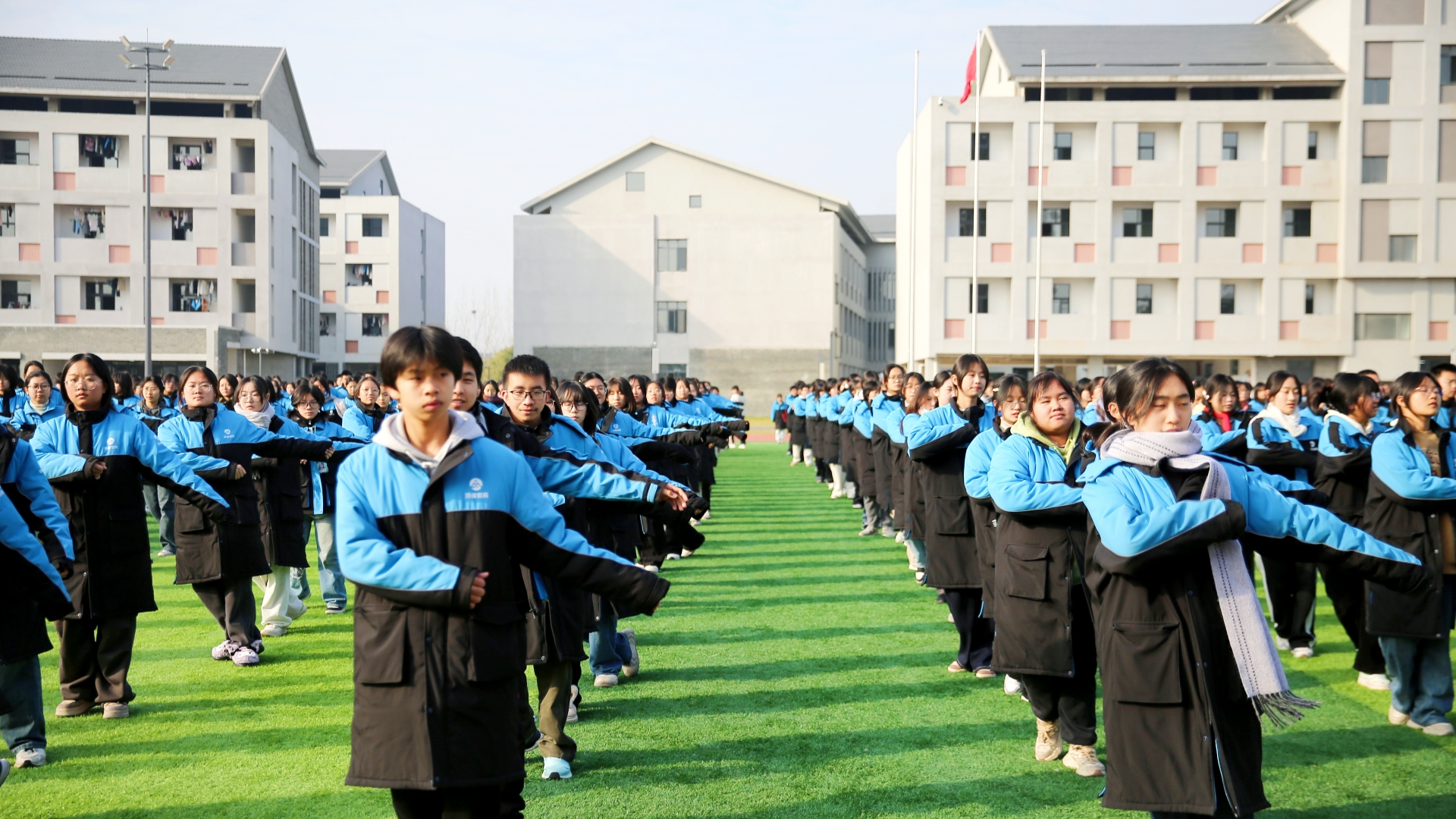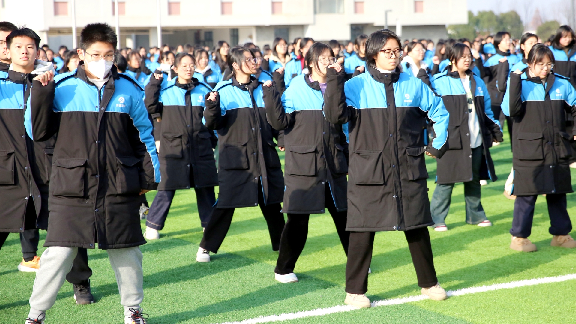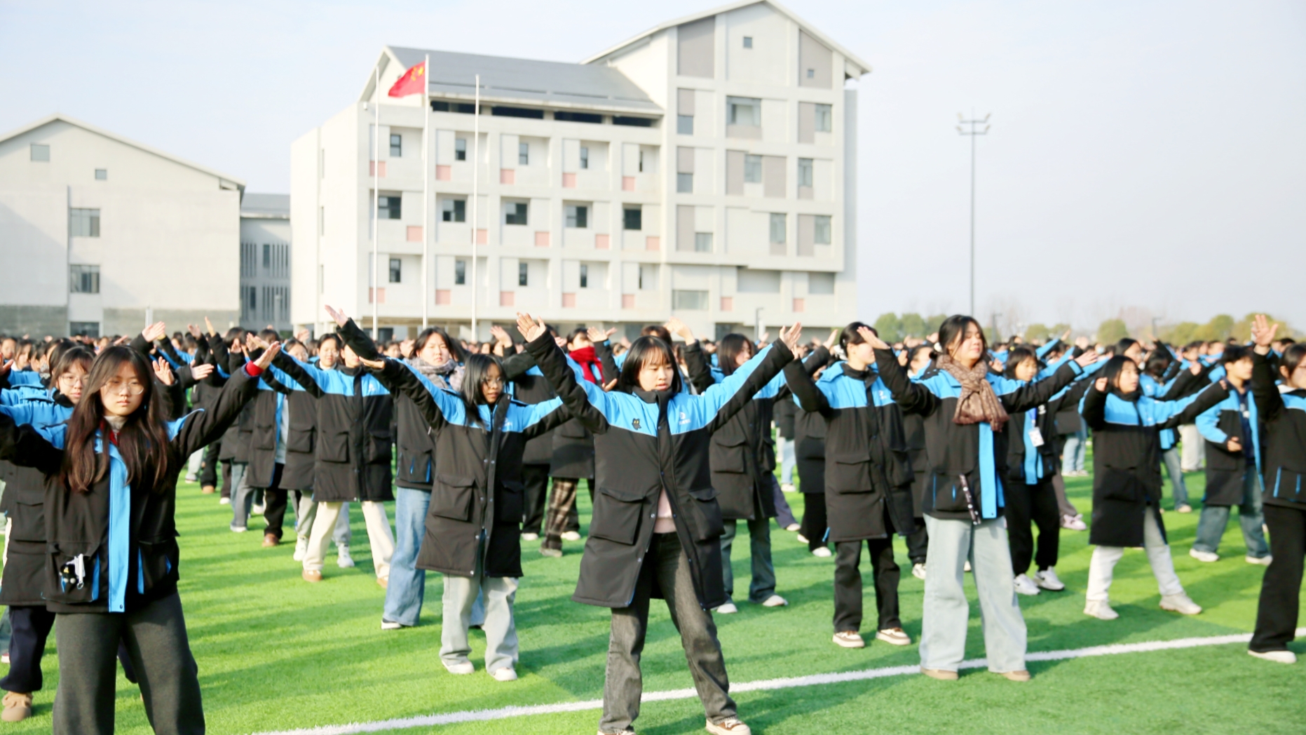 踏着音乐节奏,掌握动作要领 同学们时而跳跃,时而伸展 一招一式充盈着阳光和自信 凡目光所至,皆为青春笑脸 给校园注入了生机与活力