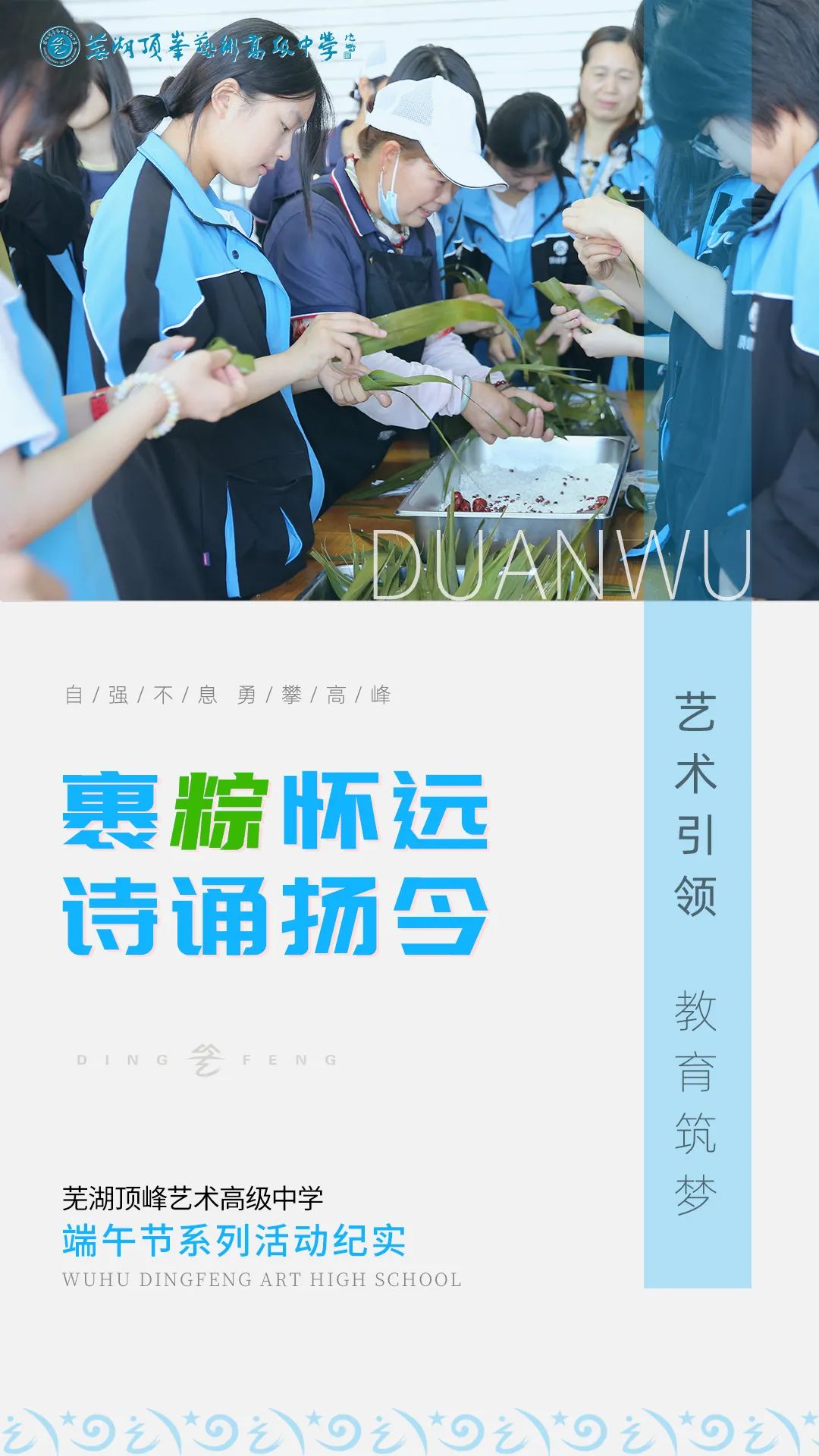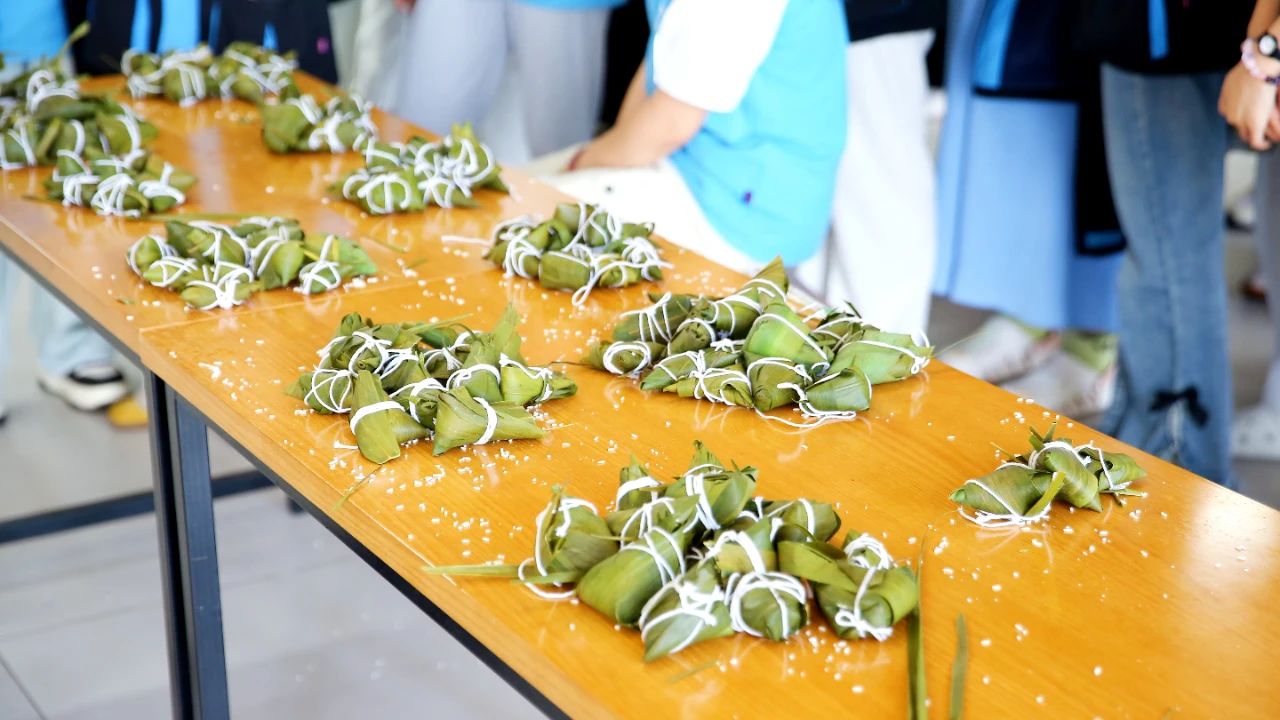 农历五月初五,又是一年端午至,又闻粽叶飘香时。为弘扬中华优秀传统文化,让同学们深入了解端午节的历史渊源、传统习俗及文化内涵,增强文化自信与民族自豪感,我校开展端午节主题系列活动,让师生在粽叶清香中触摸文化根脉,在诗词吟诵里感悟精神传承,让文化自信成为青春最鲜亮的底色。 巧手赛端午 指尖跃动粽香 端午前夕,校园食堂化作包粽比赛现场。各班派出的同学代表们,跟着食堂阿姨和宿管阿姨们学习包粽秘诀,大家一步步折叠粽叶、填入馅料、细心捆扎,学的有模有样。 粽叶翻飞间,长桌上渐渐摆满形态各异的粽子。微斜的棱角透着初学的稚拙,饱满的粽身裹着节日的喜悦。当获奖名单揭晓时,同学们手捧证书绽放笑颜,这一刻,让端午传统在青春一代手中焕发新彩。 诗韵颂端阳,少年声动华夏 23组参赛选手化身"诗的使者",以诗歌为媒传承端午文脉。他们精选经典诗作,声情交织间,生动诠释端午文化的深厚内涵;以铿锵韵律,激荡起青年的奋进之志。 校领导查付平在活动总结发言中表示,愿台上台下每位参与者都能在经典的回响中获得文化启迪,让传统节日继续焕发出历久弥新的时代光彩。 这个端午,让传统文化遇见青春力量 以手作感知先民智慧 用诗行对话往圣先贤 未来学校将持续创新传统文化传承形式 在青春实践中激活文化基因 让中华文明薪火相传