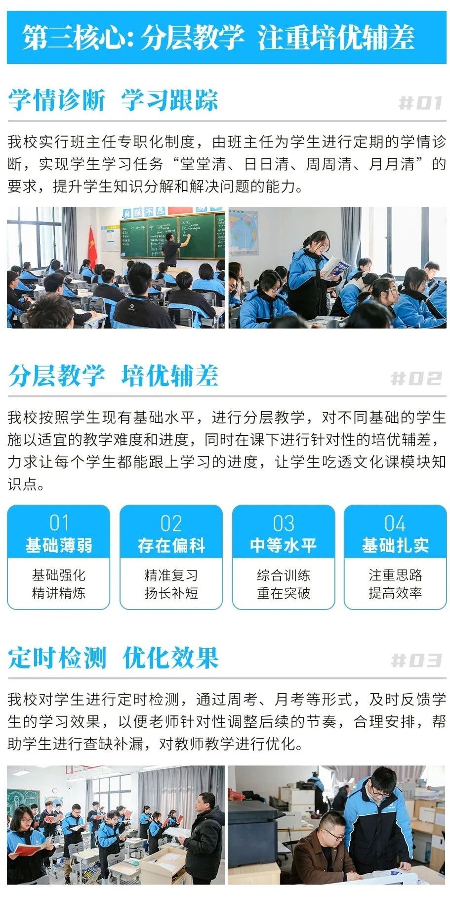 我校经过多年的探索与实践,以三大核心为支撑,在教学过程中,根据学生个体特点和认知水平,注重差异化、针对性制定教学计划和设定教学目标,尊重“循序渐进,因材施教”的育人规律,同时注重及时给予学生学习方法上的指导,从而在促进学生学习能力发展的同时,让学生在学习过程中找到自信,并感受到成功的喜悦。