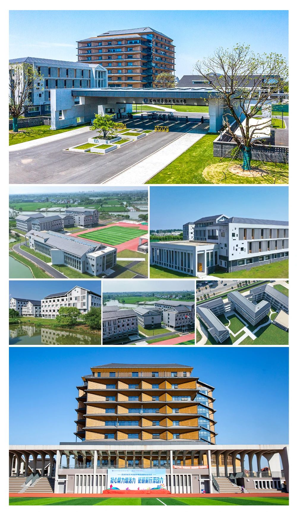 学校坐落于青弋江畔4A级景区湾沚区六郎枕水官巷,毗邻千年古村落,绿水环绕,风景秀丽,文化底蕴厚重。校区设计融合中国传统文化与美学艺术内涵,灰墙黛瓦,形成徽风皖韵文化意象,构建传统特色与现代活力兼备的创新教育氛围,打造了一所绿色生态的艺术校园。