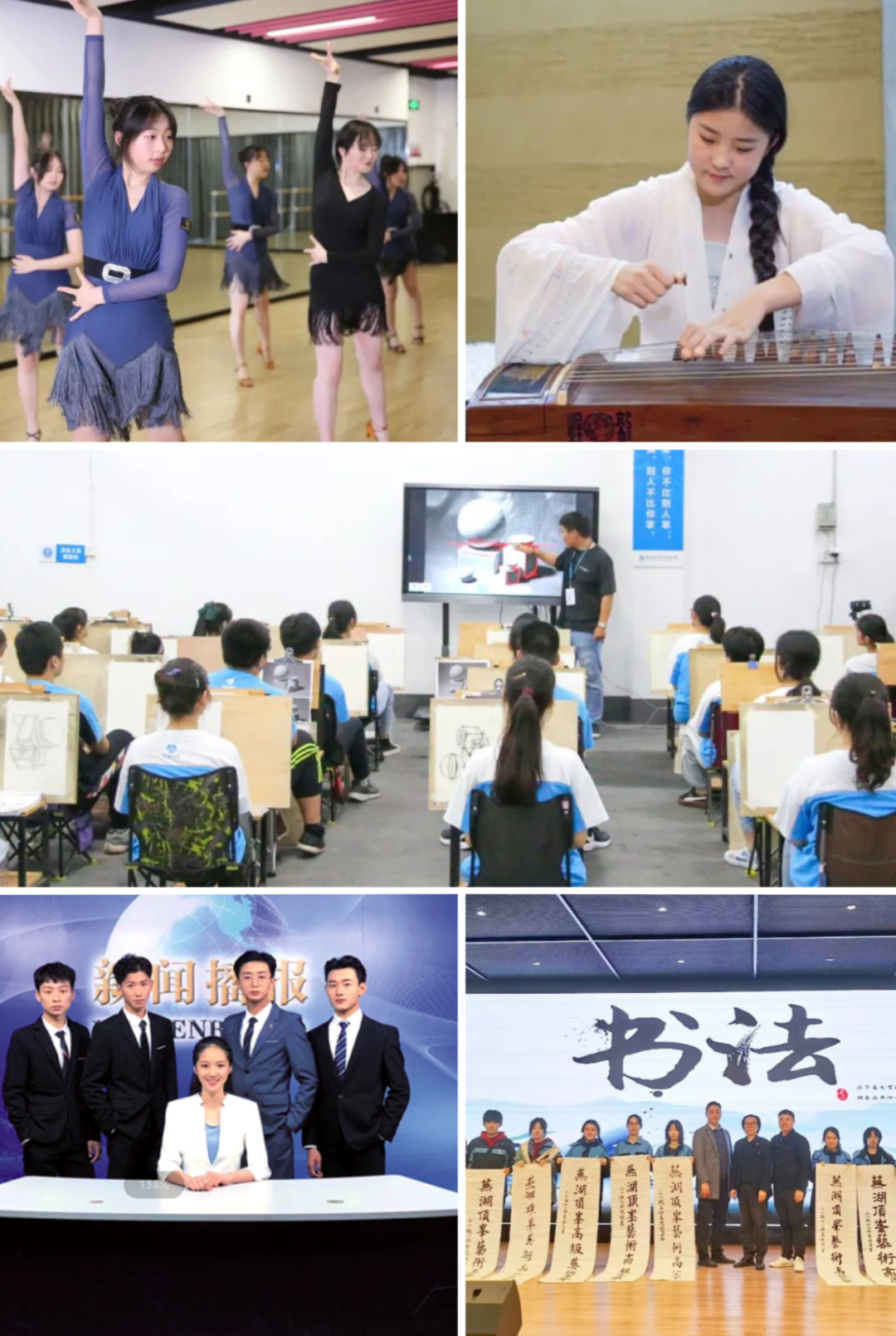 学校始终坚持“文化+艺术”双轮驱动育人模式,实现文化课和艺术课“两手抓、两手硬”,致力于培养兼具艺术素养与文化底蕴的复合型人才。根据每位学生的文化、艺术基础及潜力,实行“个性化定向培养模式”,给孩子创造多元化的升学选择,同时通过三年文化课和专业课系统化培养,最终实现“低进高出,高进优出”的培养目标。