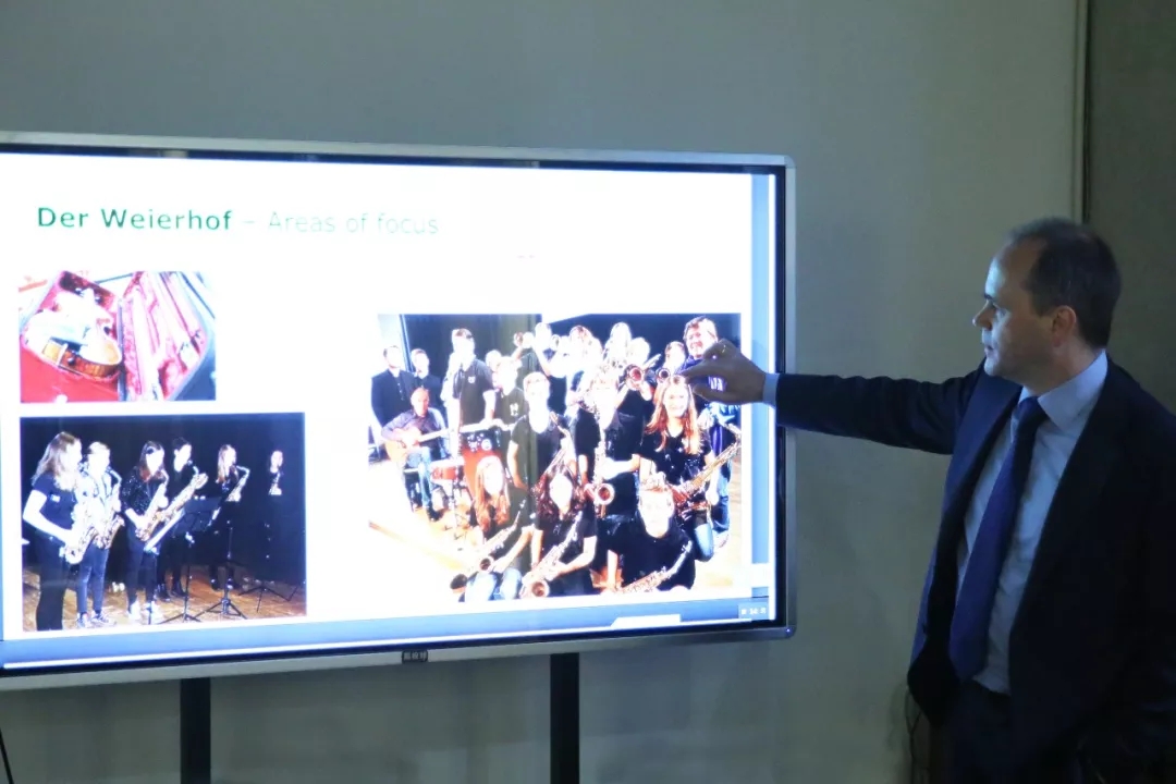 中德双方校领导合影 4月29日,德国维尔霍夫高级文理中学首席校长Scholz先生一行四人莅临我校参观交流,顶峰教育集团董事长、芜湖顶峰艺术高级中学校长夏云兴,顶峰教育集团总经理夏云龙、副总经理宋彧,芜湖顶峰艺术高级中学副校长马力、汪琳等陪同接待。 01 赏艺术校园,叙两校发展 夏校长对外宾的来访表示热烈的欢迎,学校领导陪同德国维尔霍夫高级文理中学首席校长Scholz先生一行参观校区,详细介绍了我校的办学历史、校园布局和未来规划,希望双方加强合作交流。我校作为安徽省第一家入驻特色小镇的艺术高中,贯彻实施“产教研融合”的发展理念,办学以来,一大批学子在这里实现自己的艺术梦想。德方对我校精心规划的艺术校园的点滴匠心及办学规模、办学成绩大加赞赏。 德方校长Scholz先生介绍,德国维尔霍夫高级文理中学是一所拥有近150年悠久历史又极具现代特色的高中。学校通过特色的小班授课形式和不断优化的课程设置为学生们提供了良好的教育环境,已经发展成为当地最大的文理中学,在校人数、学校建筑面积都已名列前茅,是德国文理中学标准化的制定与推动者,是一所在全德国都享有声望的学校。中德两校的友好交流将为双方的深入合作奠定坚实基础。 02 聚国际视野,话合作未来 座谈会上,双方就艺术教育交流、项目合作拓展等议题进行了深入探讨。我校一贯坚持“精品化、特色化、国际化”的办学理念,国际化办学是我校今后重要的发展方向,中德两校的合作符合我校国际化的办学定位,虽然双方分属两个国家,有不同的教育模式,但是艺术是相通的,教育的目标也相通,双方都拥有优质的艺术教育资源,更是一个富有创造力的活力学校,双方也希望通过彼此的交流,能够寻求初步合作的落地计划。 夏校长就可能合作的方向沟通了设想,将构建两校的交流平台,促进顶峰教育旗下幼儿教育、高中教育和职业教育等事业板块全方位国际交流,学习德国先进的教育经验理念,为顶峰教育终生教育产业链注入新力量。支持尽快开展高中部中德国际班、国际游学研学交流、国际合作办学等事项。 夏校长重点提到德国的工业设计闻名世界,芜湖顶峰艺术高级中学今后会深入发展高中教育版块,创办中德艺术教育论坛,学习德国工业设计先进的人才培养、人才高效应用、校企合作等模式,对我公司未来职业教育的发展大有借鉴意义,中德两校在艺术人才培养方面有很大的合作空间。依托殷港艺创小镇,吸纳中德企业参与进来,由教育交流、文化交流上升到更广阔层面的交流。德方也表示赞同,并表示会将这些好的建议带回去,落实到实践中,未来的合作非常有前景! Scholz校长的此次到访在两校间建立了友谊的桥梁,将有利于促进两校今后在各方面开展交流对话。我们秉承“走出去、引进来”的国际化办学思路,坚持“美育贯穿,全面发展”的育人宗旨,用国际化的视野来发展我们的艺术教育,倡导开放式办学,竭尽所能为学生提供优质的教育平台,拓展学生思维,培养具有国际视野和竞争力的学生,着眼于孩子的终生发展,只有这样,才能培养出真正符合当今时代潮流的创新型艺术人才,让学生的艺术之路走得更远! ···END···