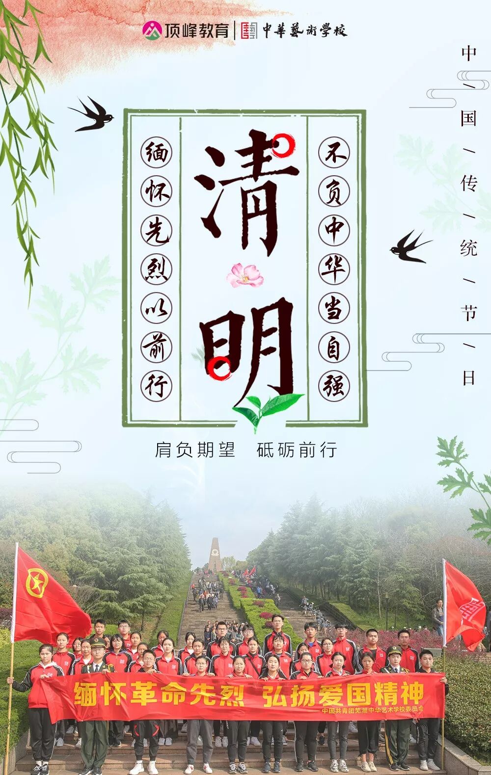 始于周代的清明节,至今已有2500多年的历史。清明原本是中国二十四节气之一,位于春分之后。每逢清明,大地回暖,万物复苏,是农业耕种的重要时机。借助于大自然的生命力,先人们将清明节作为重要的祭祀节日,世代延续下来。近代,这一绵延数千年的传统节日——清明节,被确定为法定节日。 四月天 万物复苏孕育着新生机 又是一年清明时 2019年4月4日上午 芜湖顶峰艺术高级中学组织 优秀学生干部和优秀团员前往 芜湖市神山公园开展清明节主题活动 祭扫英烈,缅怀先辈 整装待发,列队出行 默哀致敬,庄严肃穆 心怀敬意,鲜花寄哀思 汪琳副校长寄语 参观烈士纪念馆,感怀先烈 我校始终贯彻“立德树人,德育为先”的教育原则,坚持实施以五项校本教育(感恩教育、励志教育、礼仪教育、养成教育、心理教育)为蓝本的德育模式。爱国主义教育是我校德育教育的重要组成部分。每年的清明祭扫活动是爱国主义教育的重要一课,有极大的教育意义。 同学们在烈士墓前 聆听革命先烈的感人事迹 悼念人民英雄、革命先烈 表达对于人民英雄和革命先烈的敬意 会油然而生出感怀先烈和感恩国家的情怀 我们今天的美好生活和繁荣昌盛 是无数先烈们的牺牲和奉献换来的 要心怀感恩之情 审慎自我,学会珍惜 我们才能更好地走好当下的路 作为追梦人,我们必须不停地前行 去实现发展和进步 为共同的中国梦添砖加瓦 见贤思齐而后发 同学们必将先烈们的精神 转化为自己的奋进动力 树立“为中华之崛起而读书”的志向 努力用科学文化知识武装自己 为祖国的繁荣昌盛不懈奋斗! 绵延几千年的清明节 无论是缅怀亲人、先烈的哀思和精神激励 还是勘破生死的豪迈豁达 都是中华民族深厚悠久的文化传承 深入挖掘清明节作为中华优秀传统文化 蕴含的人文精神和道德规范 使同学们能够从中华文化中吸取道德的精华 理解先烈们奋斗的精神和意志品质的内涵 并将这种精神力量真正内化于心、外化于行 这是一笔无价的精神财富! 习总书记在全国教育大会上强调 “要在厚植爱国主义情怀上下功夫, 让爱国主义精神在学生心中牢牢扎根” 清明节祭扫英烈 是我校爱国主义教育的一堂重要课程 让同学们从小接受爱国主义教育,激荡爱国情怀 提升基本素养 引导广大青少年树立 正确理想、信念、人生观、价值观 逐步塑造学生优良健全的人格品质