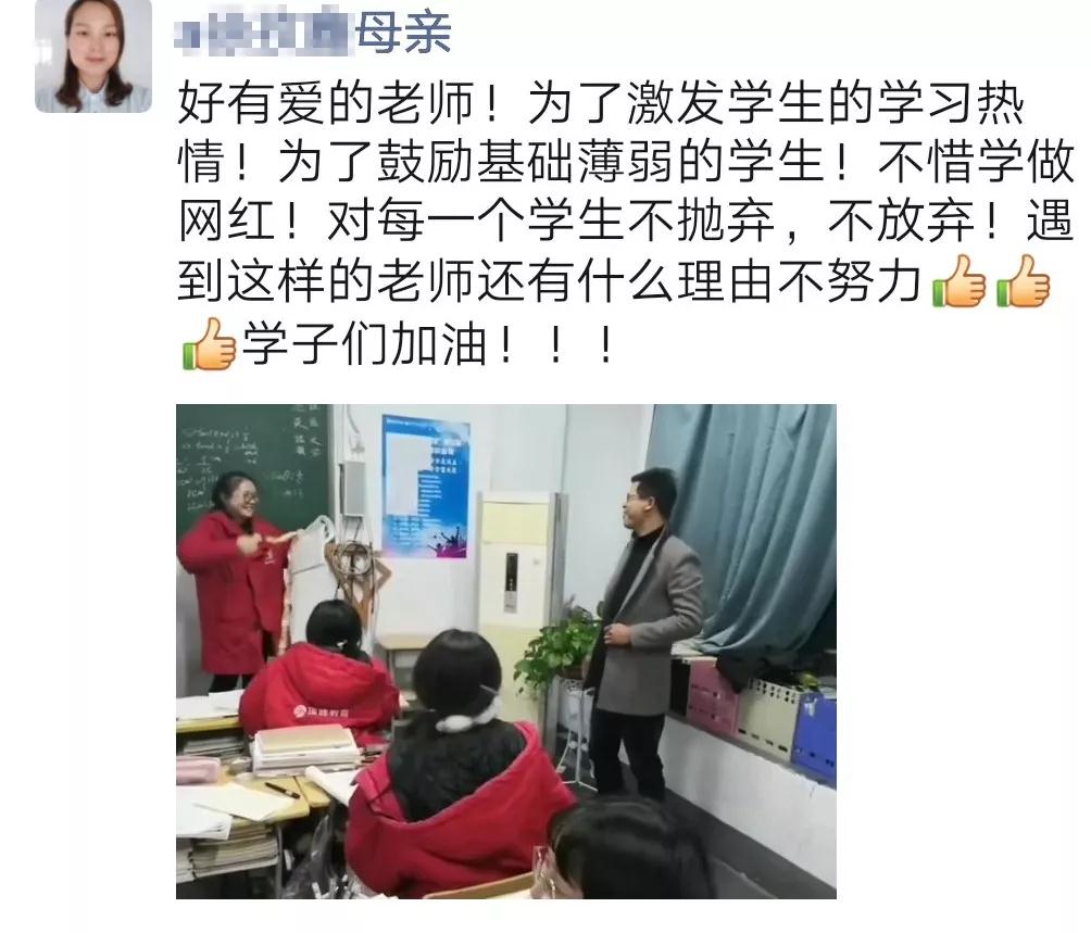 昨天的趣味课堂,在活跃课堂氛围的同时充分调动学生的学习积极性,让全体学生真正的参与到课堂中来,真正地实现以学生为主体。这种教学方式能够促进学生课前充分自主预习,课上紧跟老师思路,让学生在课堂上有获得感和荣誉感,也让学生有信心:数学并没有想象中的那么难。”