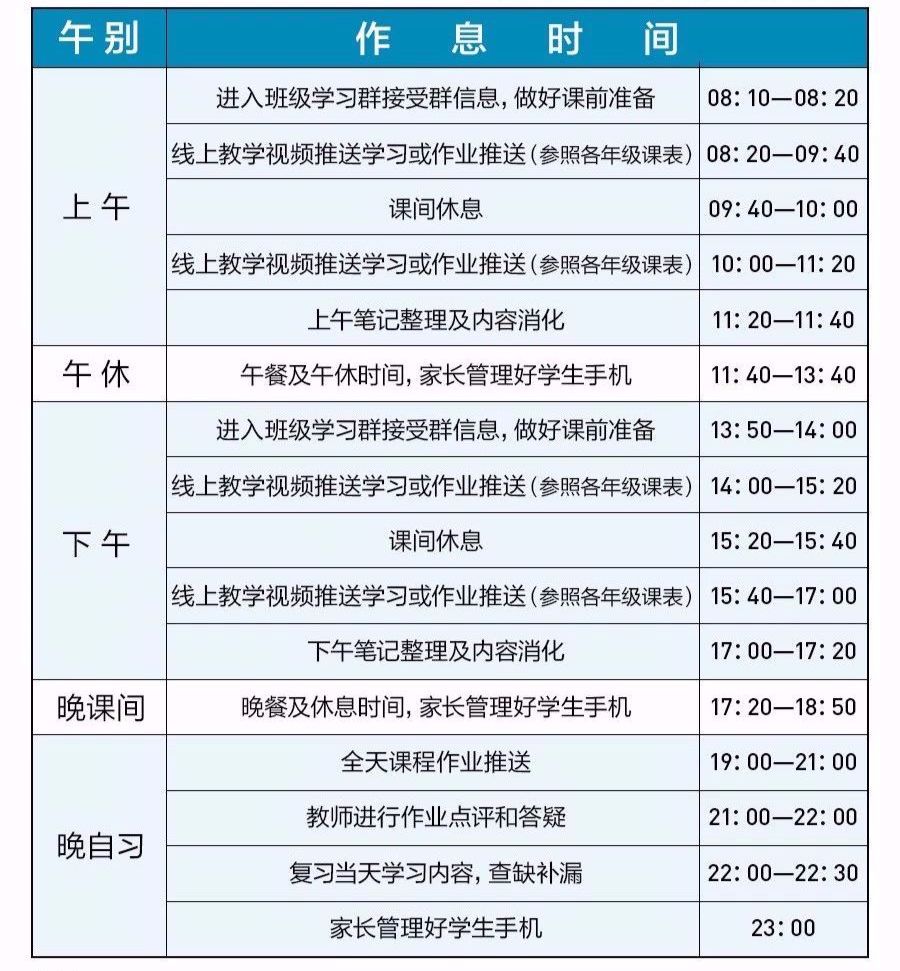 2、高一年级、高二年级主要以复习上学期教学知识为准,各学科教研组结合具体班型学情可辅助教学微视频。