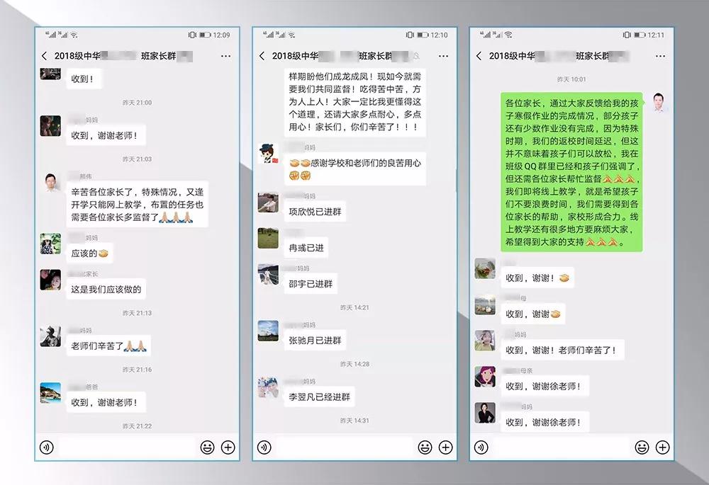 我校自2020年2月2日(正月初九)起,实施在线教学方案,开展在线课程和课后任务的互动式教学安排,针对不同年级对学生进行在线教学、指导,确保“停课不停教、不停学”,顶峰老师用爱和责任,与孩子们同在!